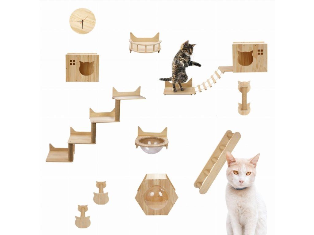 Prečo sa to oplatí? Úspora miesta – ideálna alternatíva k stojacim škrabadlám, najmä v menších bytoch. Fyzická a psychická stimulácia – mačky potrebujú pohyb a výzvy. Táto stena poskytuje dennú dávku aktivity. Bezpečné miesto len pre vašu mačku – vysoko umiestnené búdky a police poskytujú priestor, kde si váš maznáčik môže oddýchnuť ďaleko od zhonu domova. Estetika a odolnosť – moderný dizajn a odolné materiály robia z tejto hernej zóny skvelý zážitok v každom interiéri.Dodatočné parametre