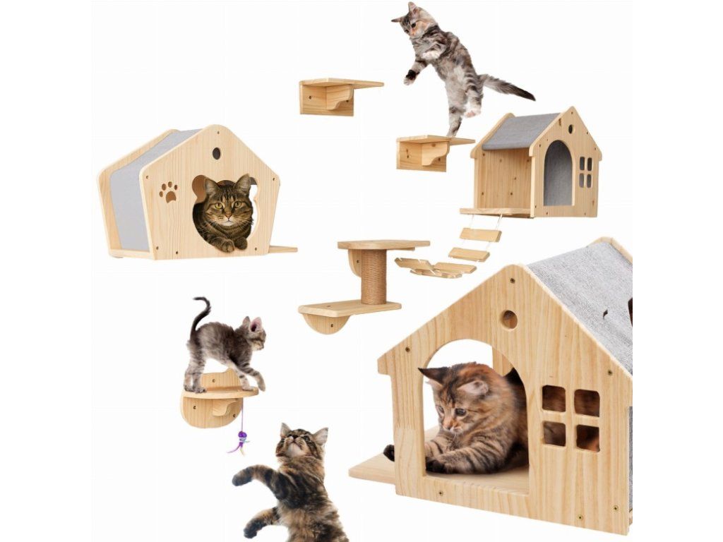 Prečo sa to oplatí? Úspora miesta – ideálna alternatíva k stojacim škrabadlám, najmä v menších bytoch. Fyzická a psychická stimulácia – mačky potrebujú pohyb a výzvy. Táto stena poskytuje dennú dávku aktivity. Bezpečné miesto len pre vašu mačku – vysoko umiestnené búdky a police poskytujú priestor, kde si váš maznáčik môže oddýchnuť ďaleko od zhonu domova. Estetika a odolnosť – moderný dizajn a odolné materiály robia z tejto hernej zóny skvelý zážitok v každom interiéri.Dodatočné parametre