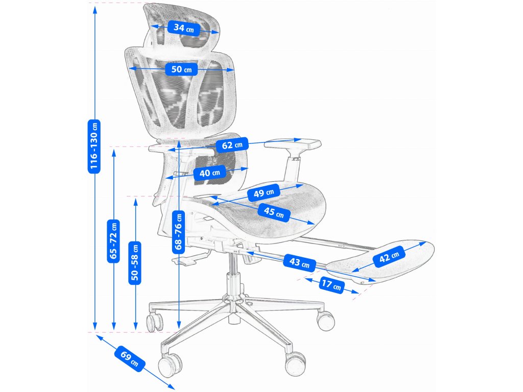 Otočná stolička NEOVA Ergonomická stolička NEOVA je navrhnutá tak, aby poskytovala používateľovi maximálne pohodlie. Má stabilnú základňu s hladko sa pohybujúcimi kolieskami a materiály, ktoré zaisťujú pohodlie a priedušnosť. Tento model je vybavený výklopnou opierkou na nohy, ktorá je ideálna na relaxáciu,Dodatočné parametre