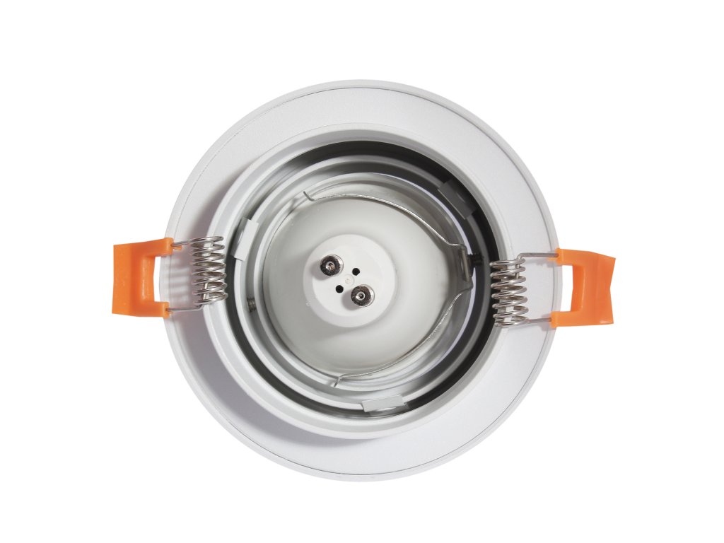 Bodové zapustené stropné svietidlo určené pre žiarovky GU10. Vyrobené z hliníka natretého bielou a matnou čiernou farbou. Svietidlo z najnovšej série sa vyznačuje vysokou kvalitou spracovania a detailným prevedením. Jemné hrany a zaoblené línie dodávajú prostrediu eleganciu a jemnosť. Ideálne do obytných aj komerčných interiérov, ako sú obchody, kancelárie, galérie.
