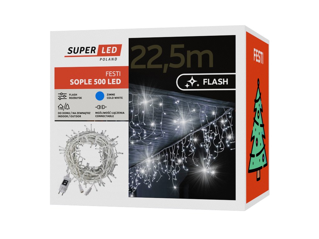 Icicles 500 LED vonkajšie 22,5 m IP44 studená + blikanie