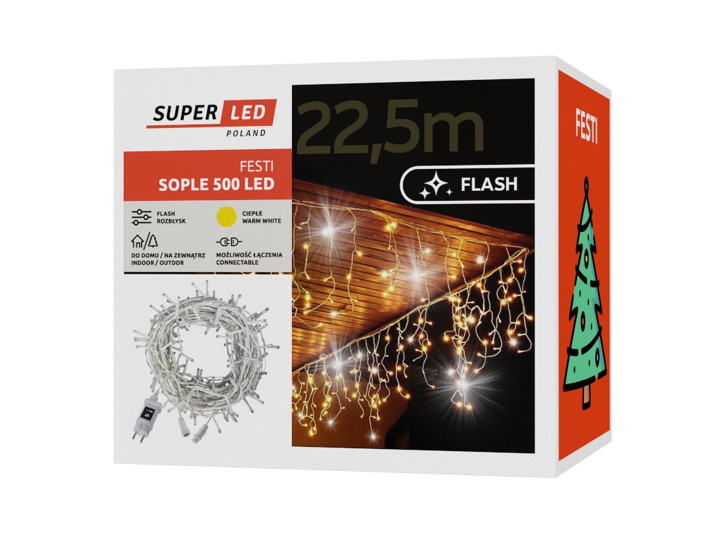 Icicles 500 LED vonkajšie 22,5 m teplé svetlo + blikanie