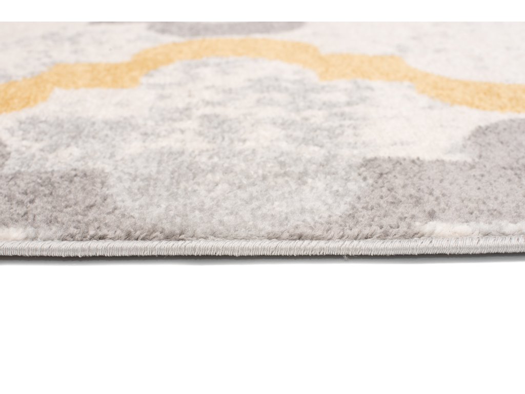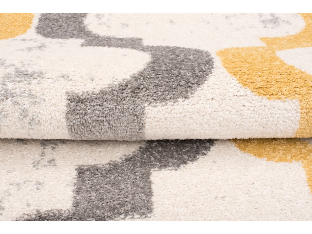 Koberce Lazur sú mäkké a príjemné na dotyk vďaka použitiu špeciálnej polypropylénovej priadze Calping Frize pri ich výrobe. Vytvárajú husté a husté vlasy s hrúbkou 8-9 mm a ich priemerná hmotnosť je 1400gr / m2. Technológia použitá pri výrobe tohto typu kobercov umožnila výrobcom získať čo najlepšiu podobnosť vlny so všetkými výhodami syntetických kobercov. Ľahko sa udržujú v čistote vysávaním a čistením špongiou a šampónom. Štetiny sú vyrezané do vzorov, čo vytvára trojrozmerný efekt. Koberce Lazur sú veľmi atraktívne do každého interiéru. Táto kolekcia obsahuje koberce s modernými vzormi a intenzívnymi farbami ako je béžová, hnedá, zelená a fialová.Dodatočné parametre