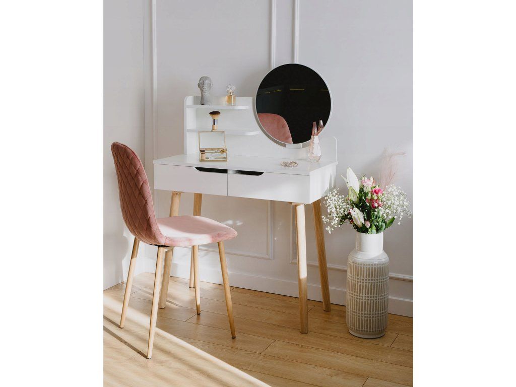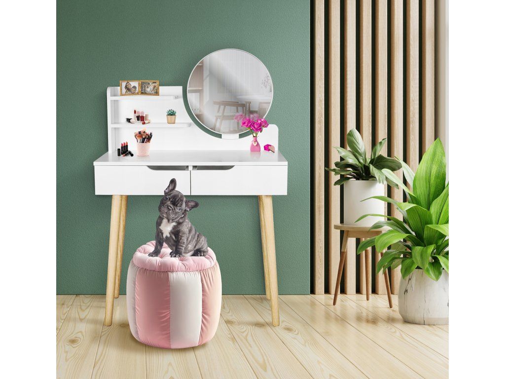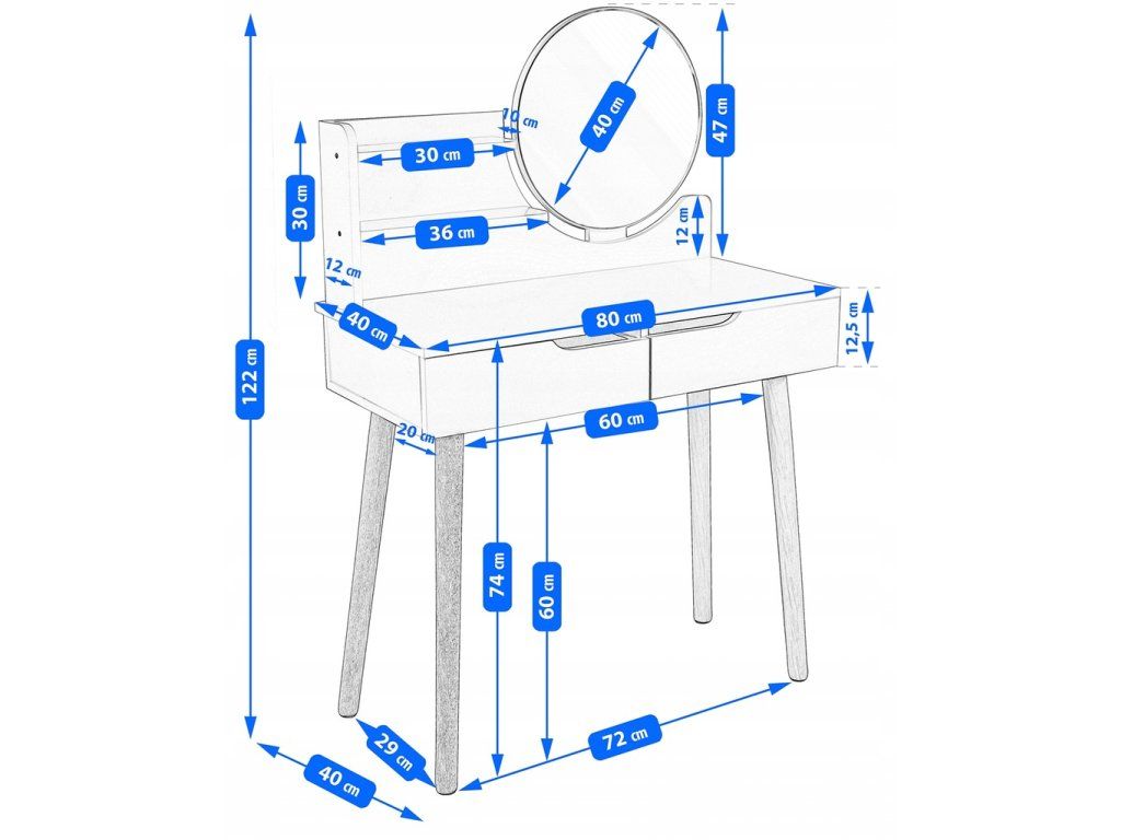OPTIMÁLNE a PRAKTICKÉ VYUŽITIE zásuvky, ideálne na kozmetiku, šperky, účtenky, písacie potreby a všetky možné drobnosti, ktoré konečne nájdu svoje miesto, praktické police na predmety dennej potreby, ako je krém na ruky, nádoba so štetcami na púder, parfumy, vlasové doplnky, pracovná doska, umožňuje vám tiež použiť toaletný stolík ako písací stôl, zrkadlo, vďaka ktorému si môžete starostlivo skontrolovať účes a make-up zo všetkých strán, praktický priestor na zasunutie stoličkyDodatočné parametre