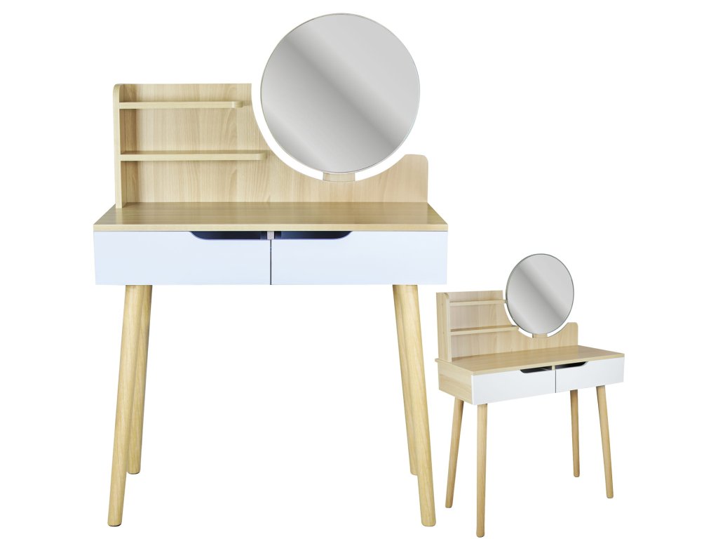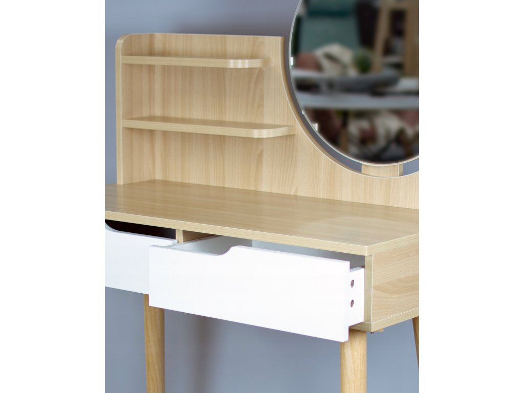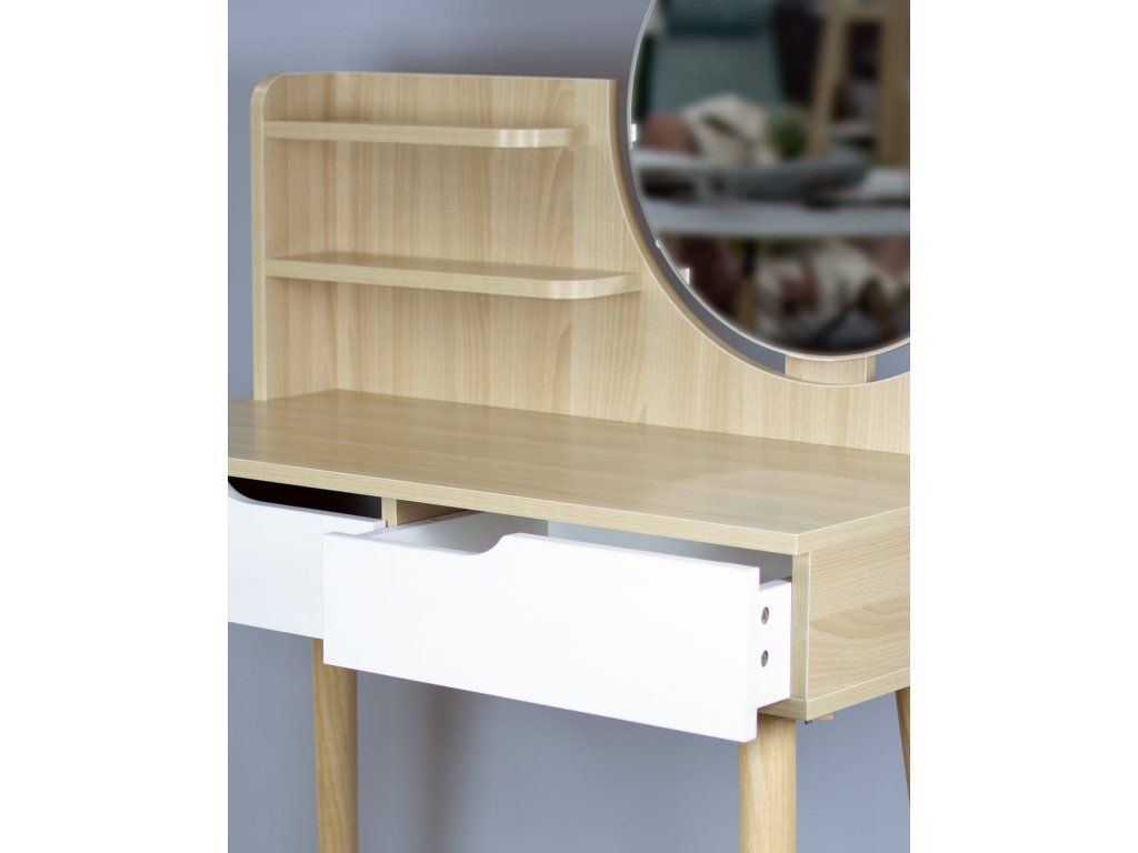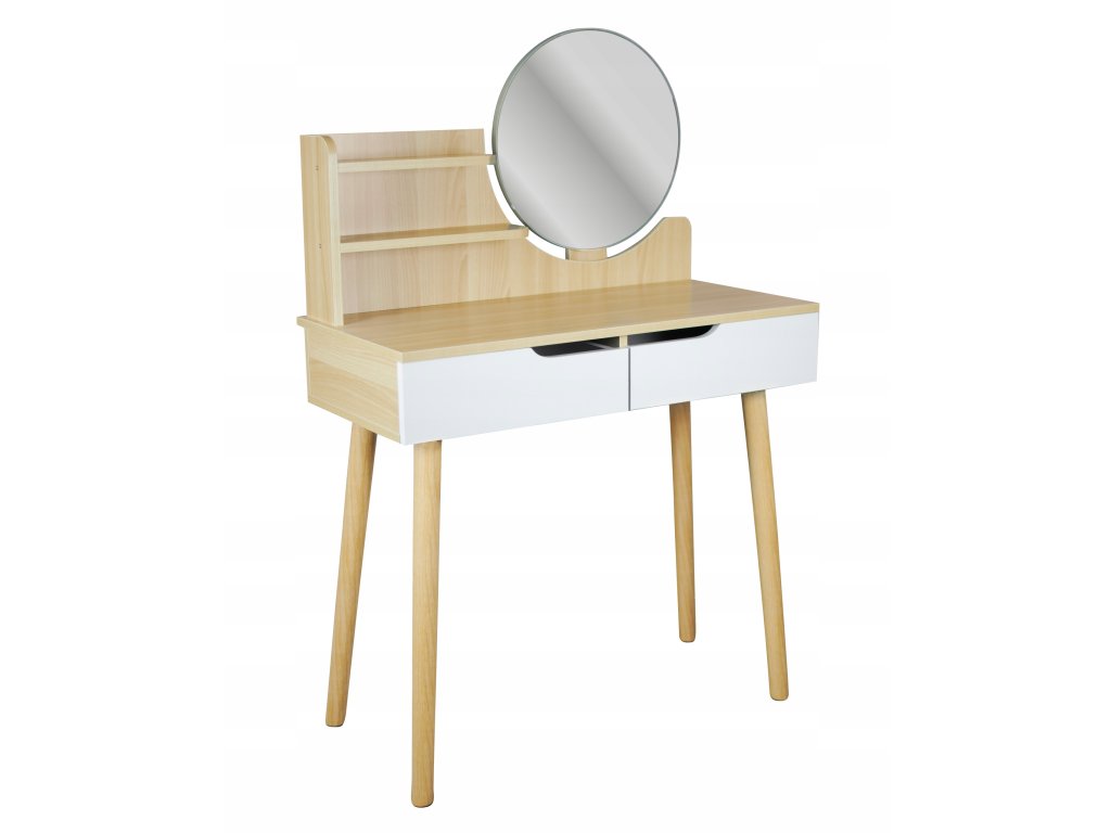 Kozmetický toaletný stolík so zrkadlom - SCANDI biely / buk