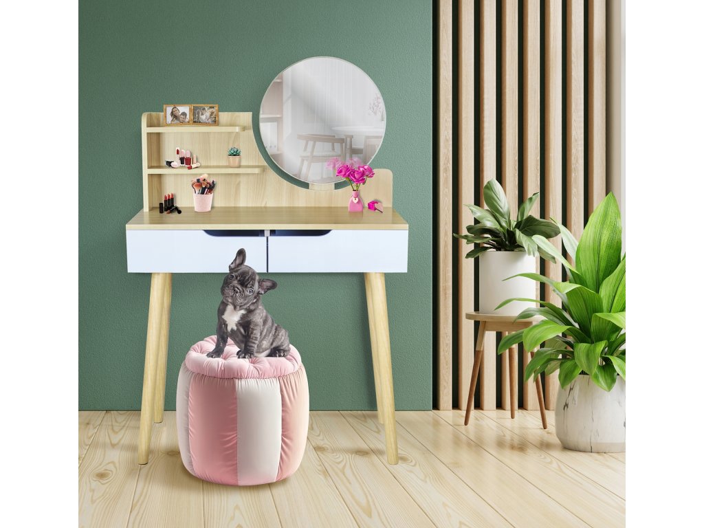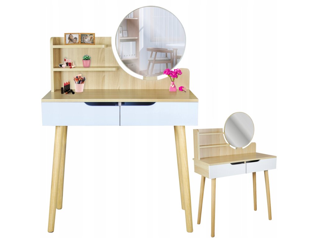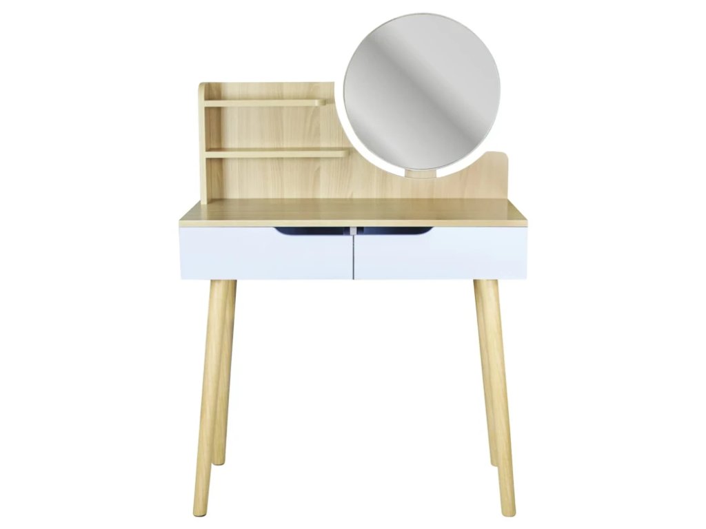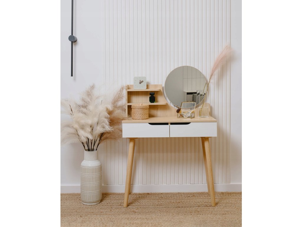 Kozmetický toaletný stolík so zrkadlom - SCANDI biely / buk