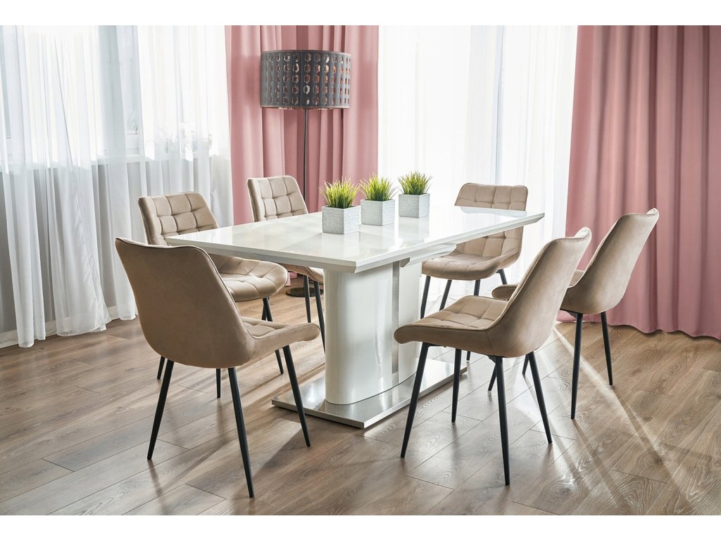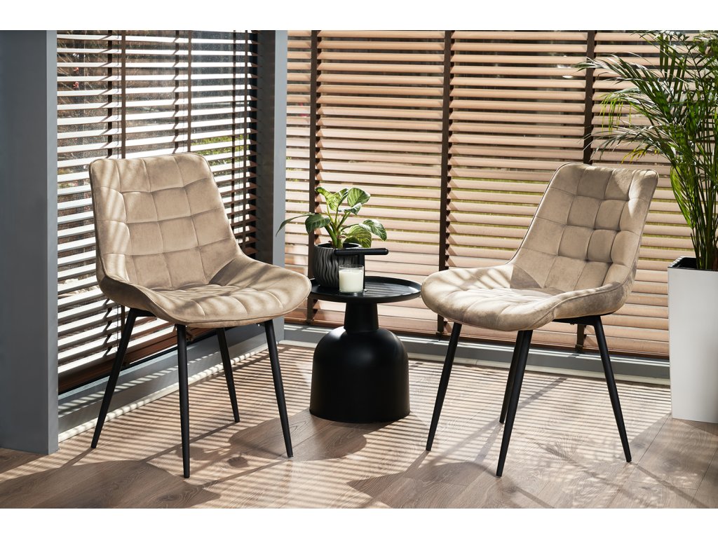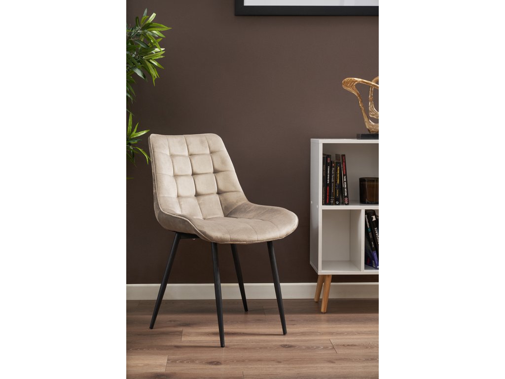 Stolička z kolekcie MISTY. Zamatové čalúnenie z velúrovej látky pôsobí mimoriadne jemne a vysoké a štíhle nohy v čiernej farbe pôsobia veľmi elegantne a zaručujú dokonalú stabilitu.Dodatočné parametre