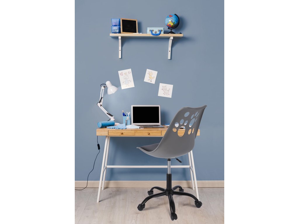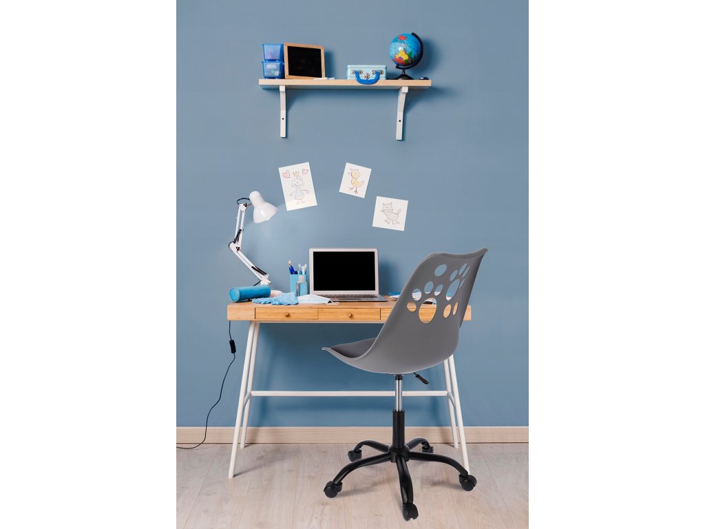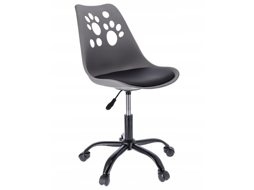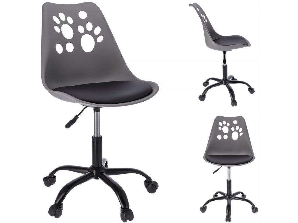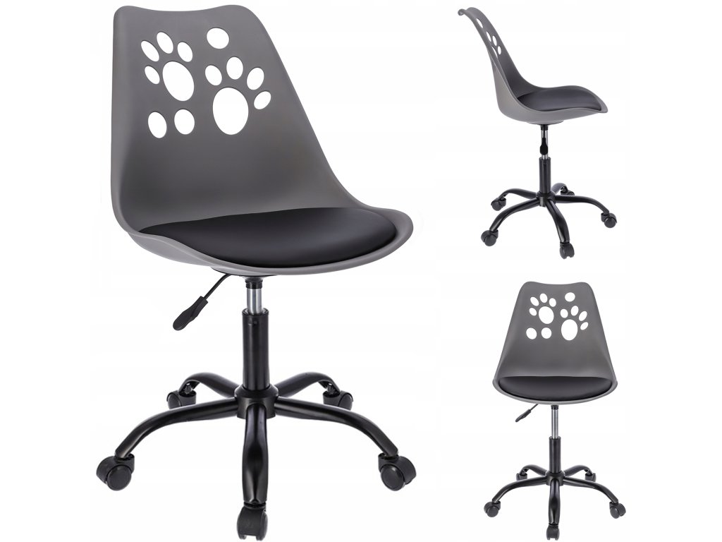 Krzesło z kolekcji JOY Idealnie wyprofilowane oparcie z motywem psich łapek w połączeniu z miękką poduszką umieszczoną na siedzisku zapewnia wygodę, a pięcioramienna podstawa zakończona niewielkimi kółkami daje dużą stabilność oraz zabezpiecza powierzchnię przed zarysowaniem. Krzesło posiada siłownik, który pozwala dostosować wysokość siedzenia do wymaganych potrzeb.Dodatočné parametre