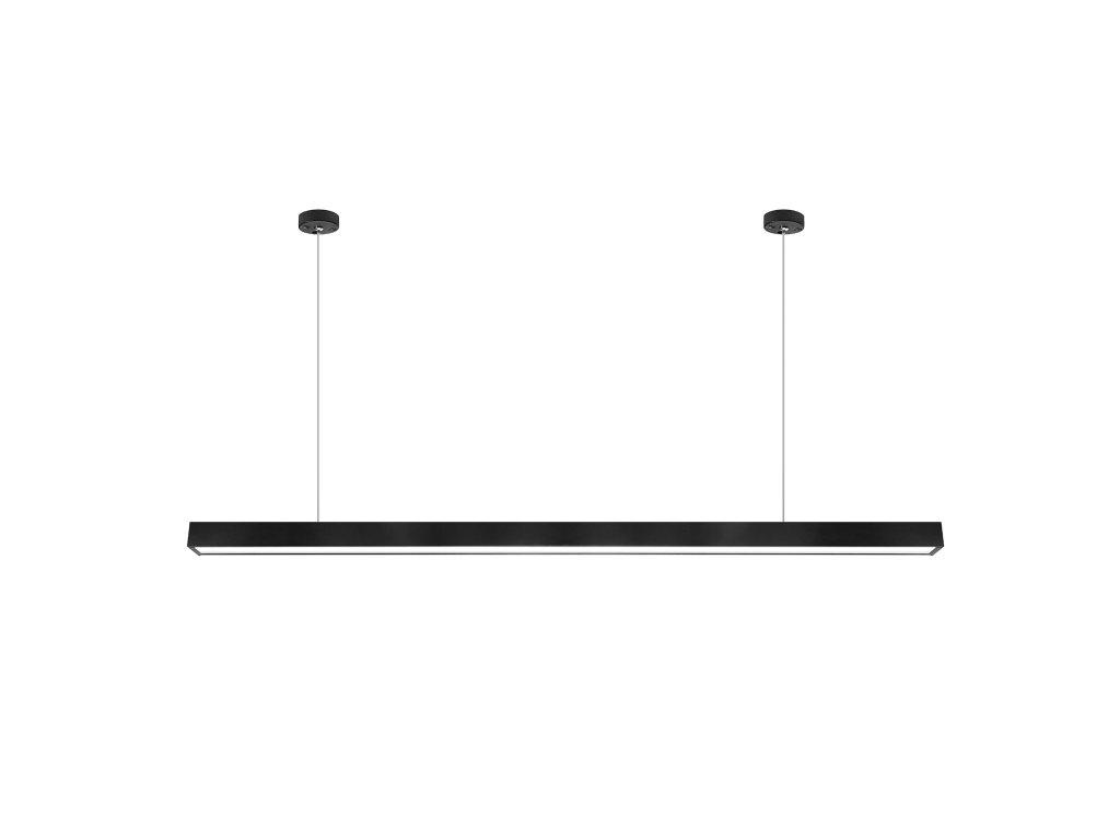 Lineárne kancelárske závesné svietidlo Ideálne do kancelárií, škôl, skladov, ako aj do obytných priestorov. Puzdro je vyrobené z hliníka, takže teplo sa lepšie rozptyľuje - čo ovplyvňuje životnosť. Rám je práškovo lakovaný čiernou farbou, matný povrch.