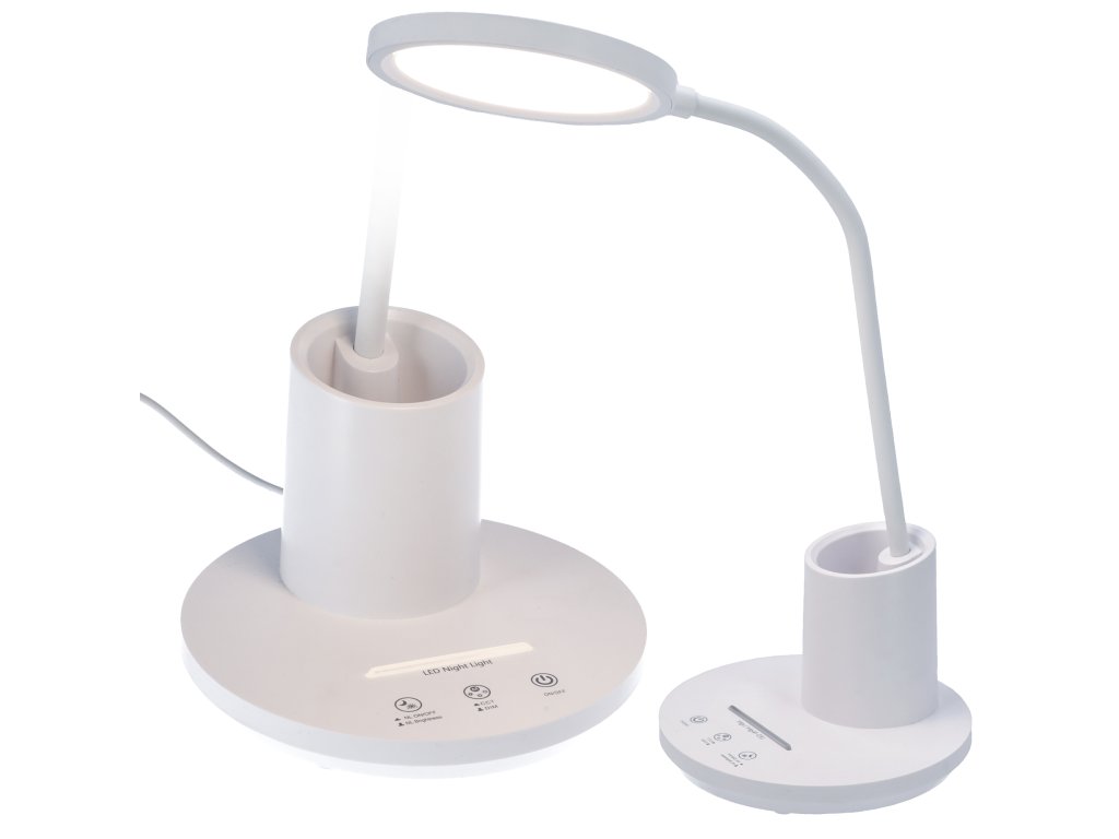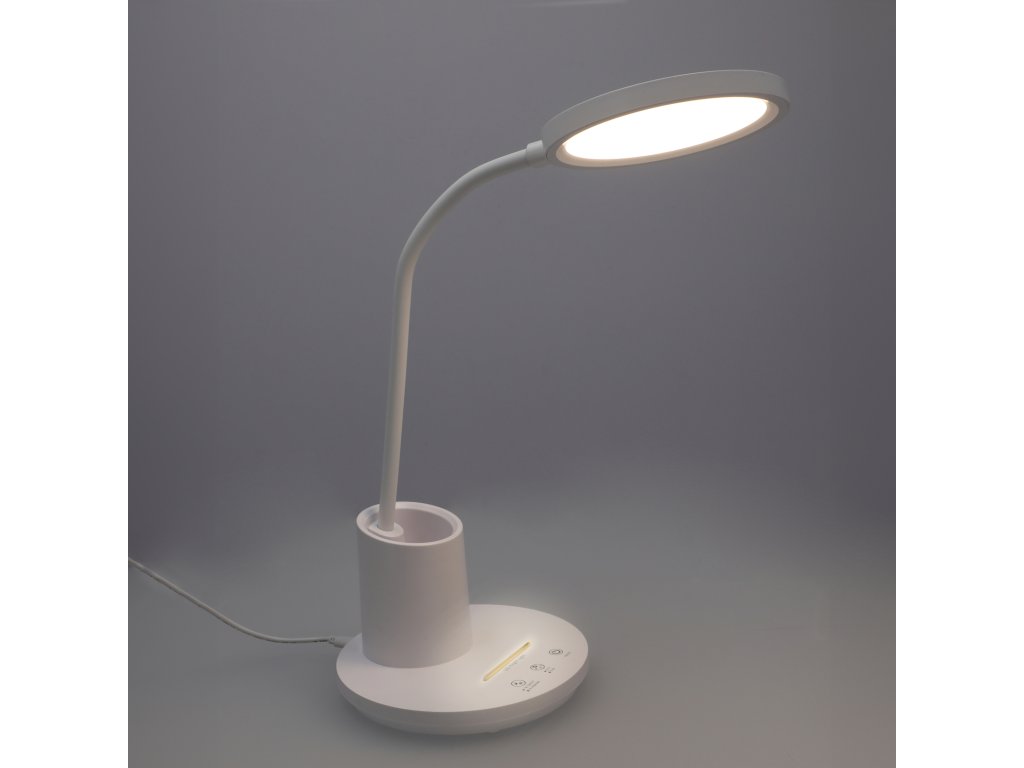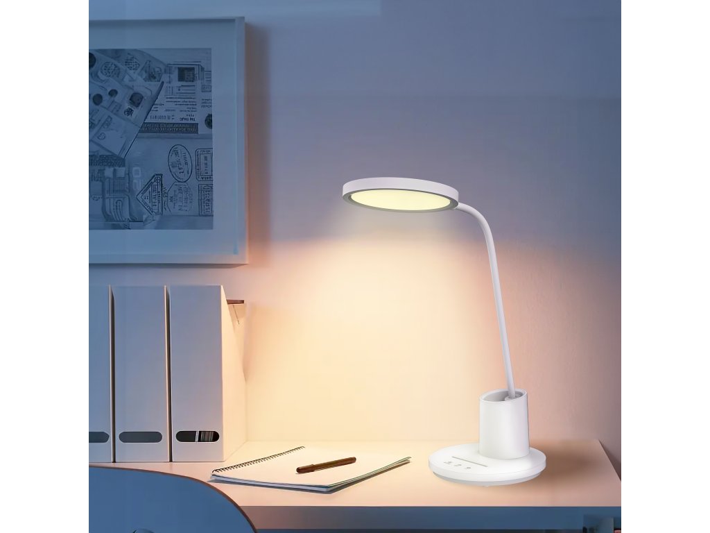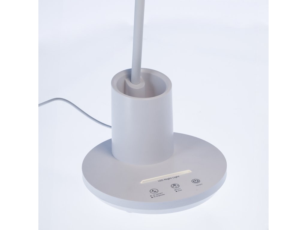 Vstavaný držiak na pero a telefón vám uľahčí prehľadnosť na stole a udržiavanie čistoty. Dotykové spínače upravujú farby osvetlenia a úrovne jasu. Lampa má tri farby: teplú, studenú a neutrálnu, čo vám umožňuje prispôsobiť si ju podľa vašich osobných potrieb. Minimalistický dizajn robí z lampy perfektnú kombináciu do každého interiéru.Dodatočné parametre