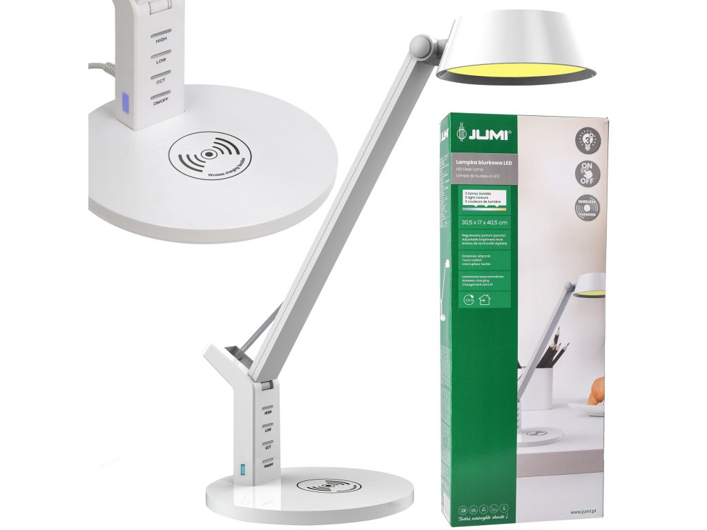Tri farby svetla umožňujú ovládať intenzitu osvetlenia, čo je obzvlášť užitočné počas dlhých hodín štúdia alebo práce. Dotykové spínače uľahčujú používanie. Lampa je tiež vybavená bezdrôtovým nabíjaním, ktoré umožňuje mimoriadne rýchle a pohodlné nabíjanie vami zvoleného zariadenia. Jej elegantný a minimalistický dizajn doplní každý interiér.Dodatočné parametre
