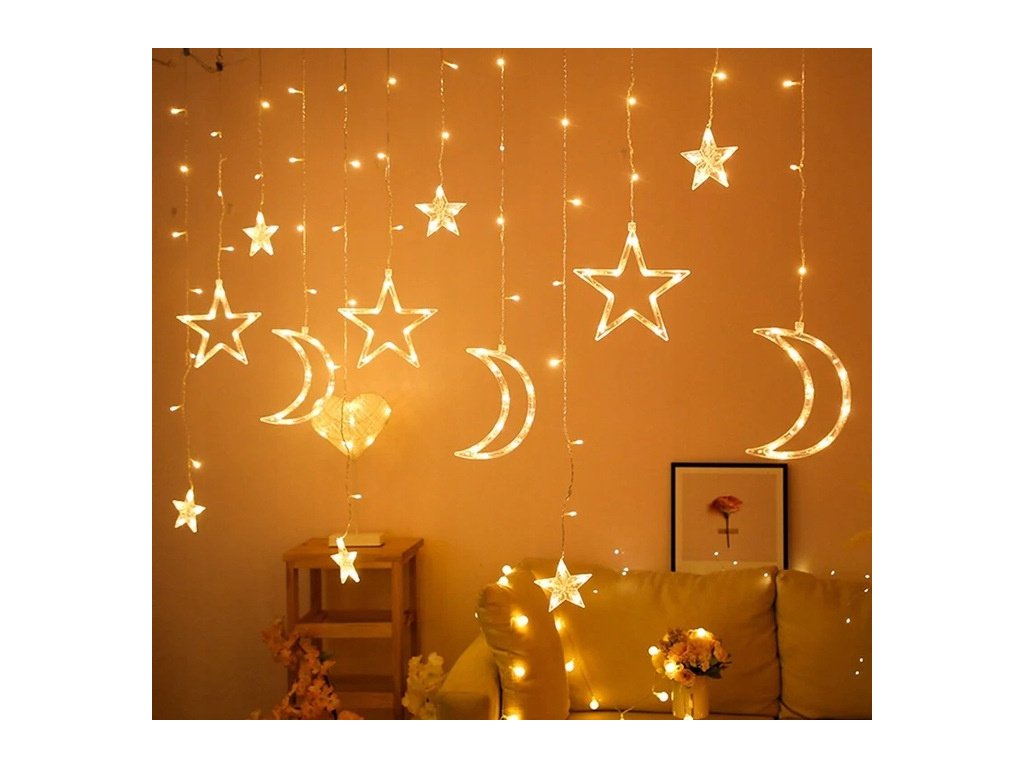 LED SVETELNÁ ZÁVES MESIAC VIANOČNÉ SVETLÁ NA VIANOČNÝ STROMČEK 136 LED FAREB 3000K