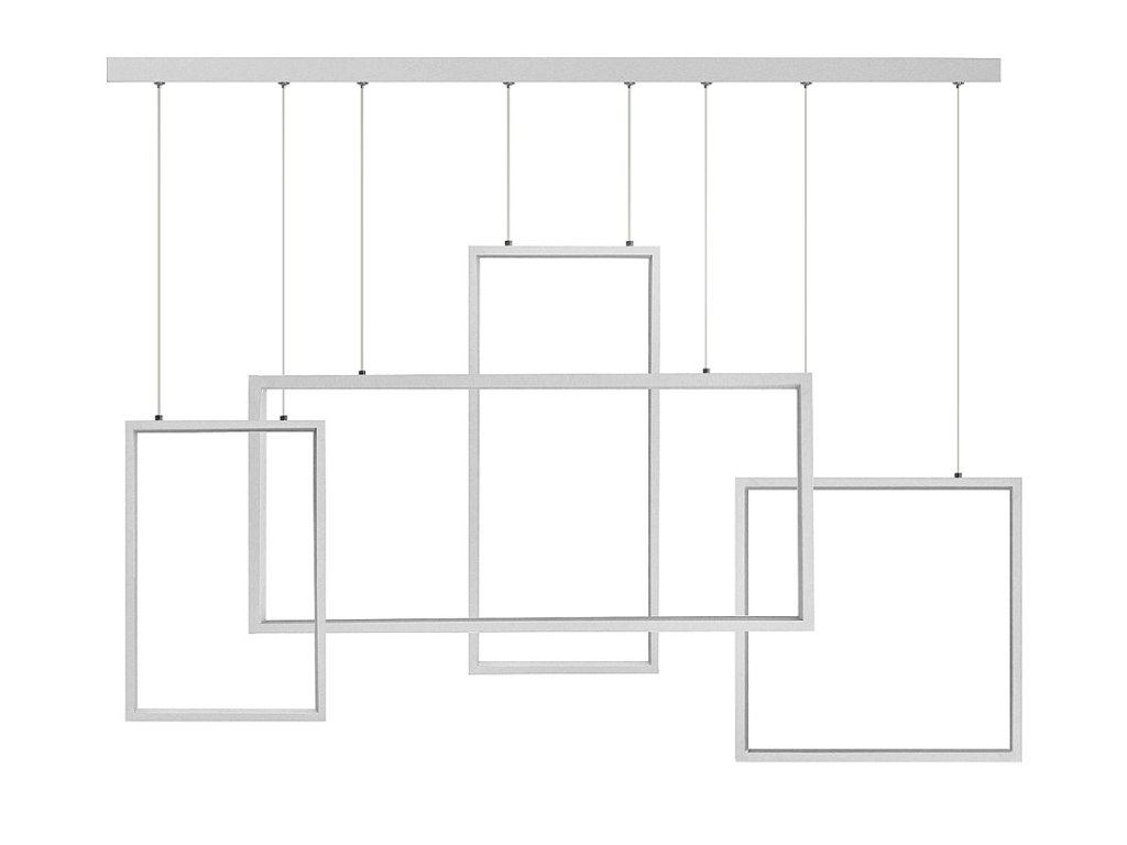 Štyri obdĺžnikové hliníkové profily s práškovou farbou - s LED diódami - je možné zavesiť v rôznych výškach, čím sa vytvoria rôzne dizajny svietidiel v závislosti od výšky.