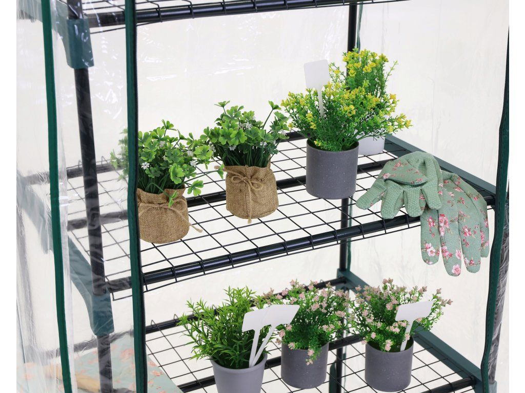 Pestovanie sa pre vás stane nielen vášňou, ale aj relaxačným a spoločenským zážitkom. Experimentujte s rôznymi druhmi kvetov, zeleniny a byliniek, pozorujte ich rast a vychutnávajte si čerstvú úrodu priamo z vlastného balkóna! VÝHODY SKLENÍKA: Fóliová konštrukcia umožňuje reguláciu teploty a vlhkosti a ochranu pred nepriaznivými poveternostnými podmienkami. Optimálne podmienky pre rast a vývoj po celý rok. Jednoduchá montáž. Pohodlný prístup do vnútra skleníka vďaka rolovacím oknám so zipsami. Ľahký a ľahko prenosný. Chráni pred škodcami. Skleník má priehľadné steny, ktoré umožňujú maximálne využitie tepla a slnečného svetla. 4 police.Dodatočné parametre
