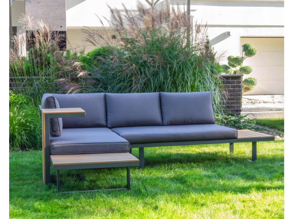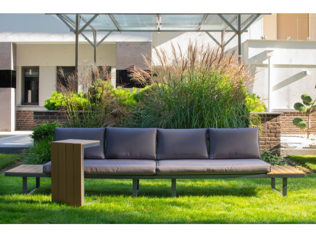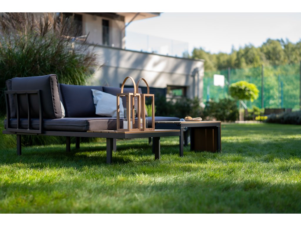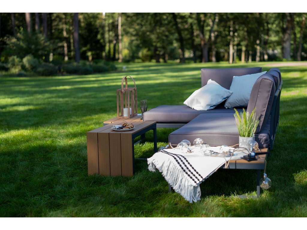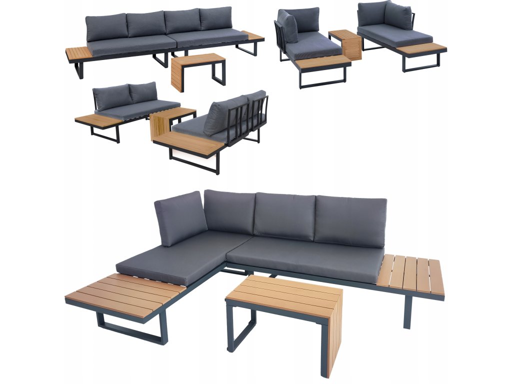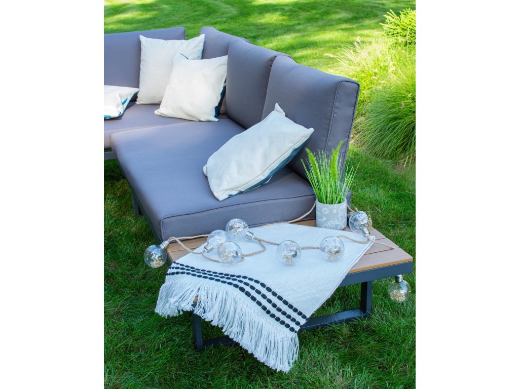 Nízke, ale pohodlné sedadlo je ideálne na relax vonku. Dodatočný priestor na koncoch pohovky a zodpovedajúci konferenčný stolík poskytujú dostatok miesta na nápoje a občerstvenie. Celá súprava je vyrobená z odolného hliníka, vďaka čomu je veľmi ľahká a ľahko sa premiestňuje a mení usporiadanie. Rozsiahla modularita súpravy umožňuje jej prispôsobenie sa akémukoľvek priestoru alebo jej konfiguráciu podľa vašich potrieb. Poťahy sú odnímateľné.Dodatočné parametre