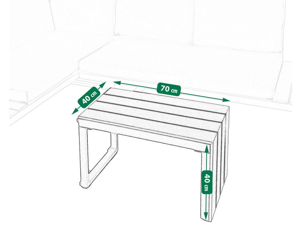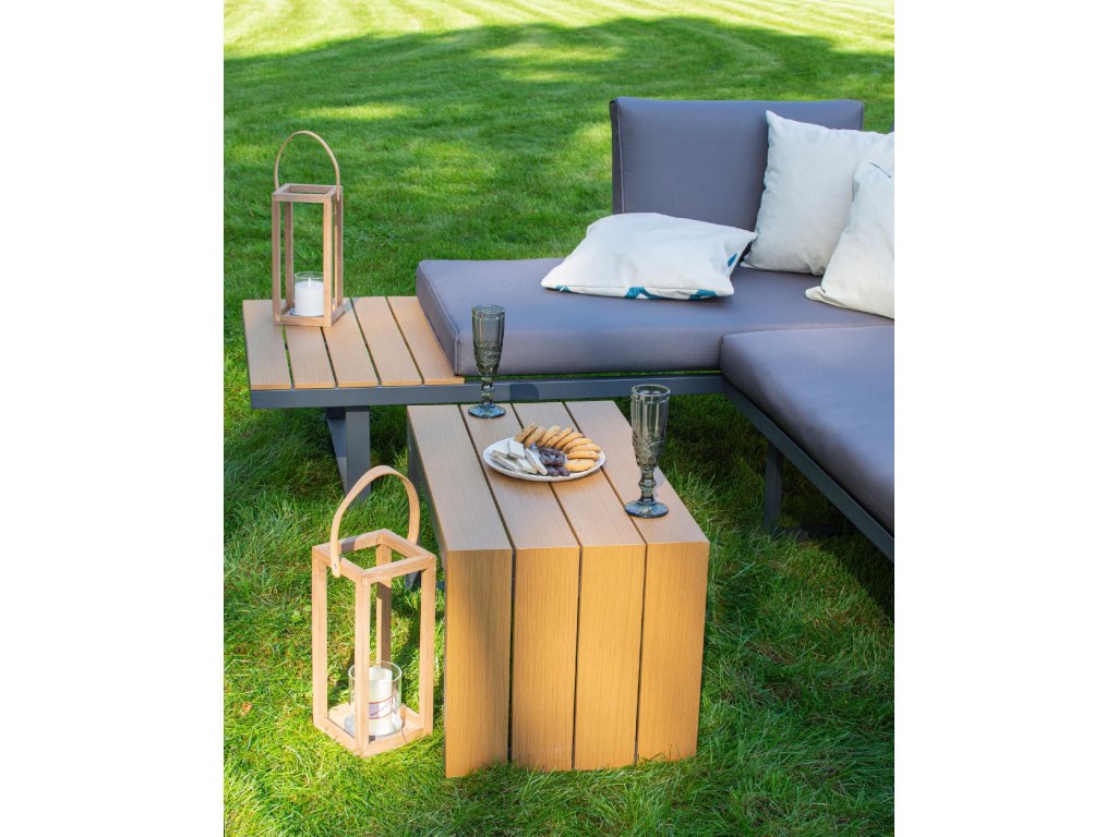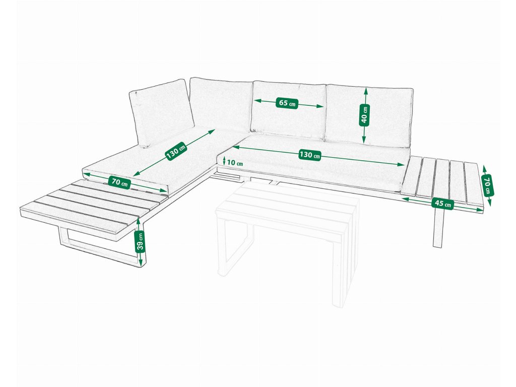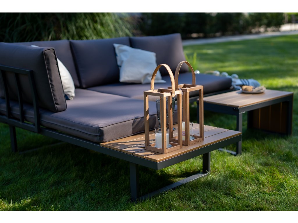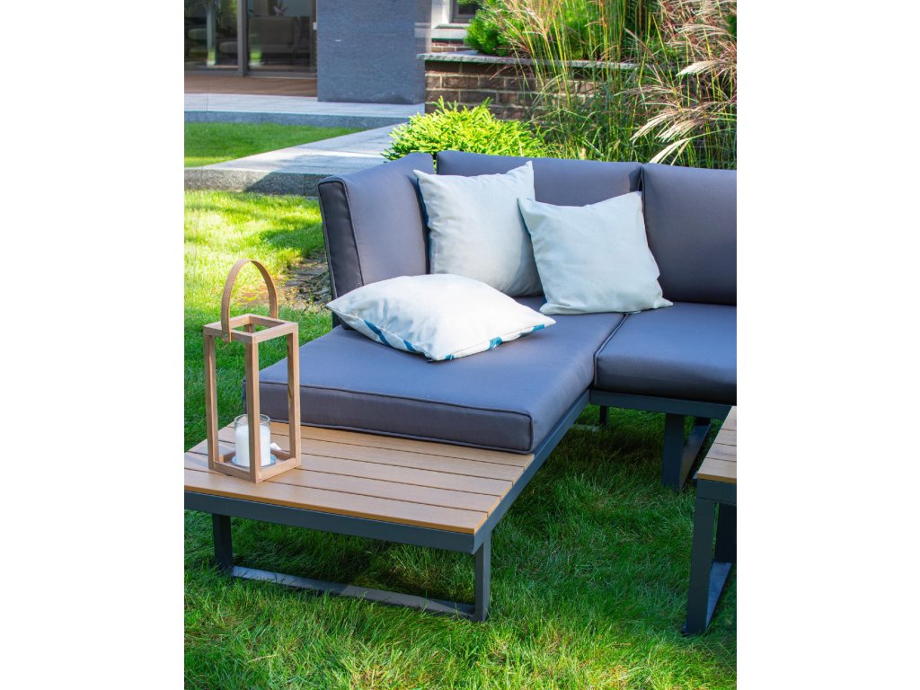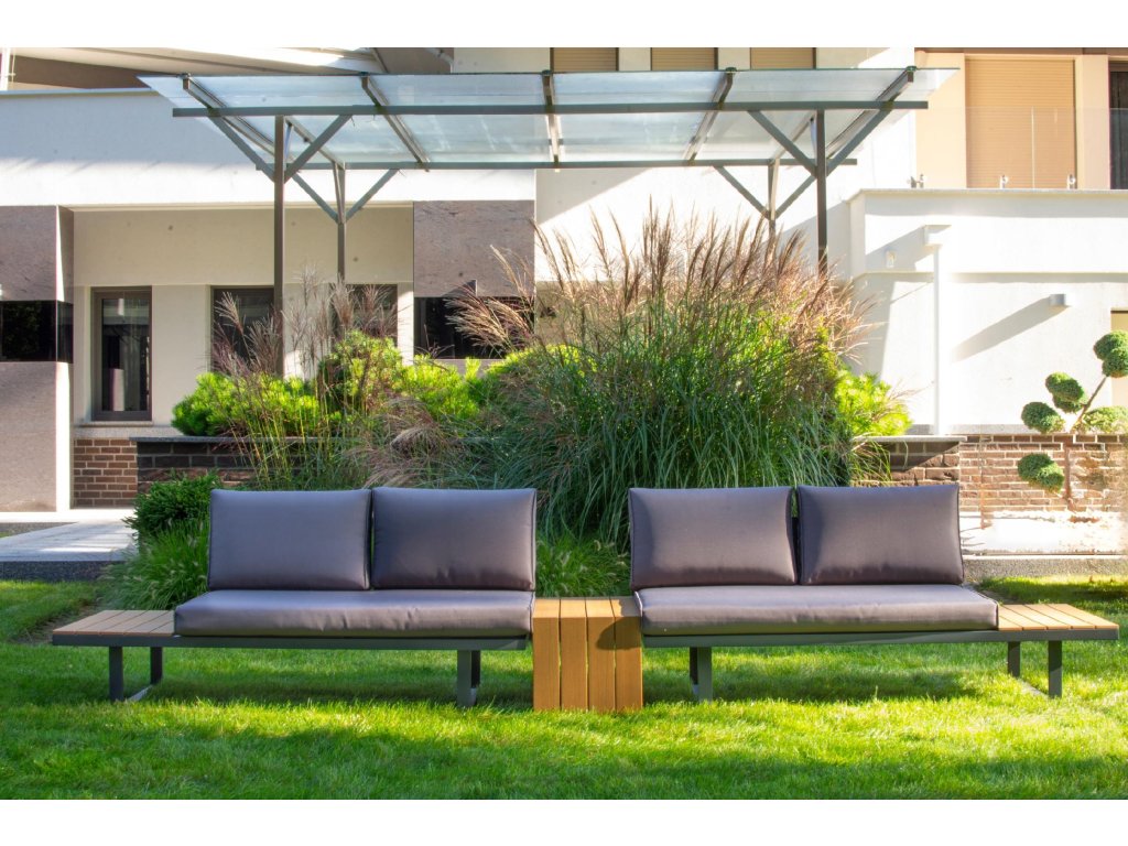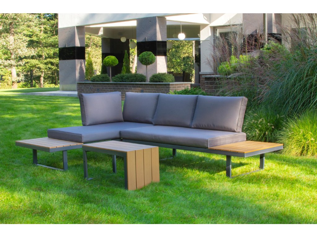 Nízke, ale pohodlné sedadlo je ideálne na relax vonku. Dodatočný priestor na koncoch pohovky a zodpovedajúci konferenčný stolík poskytujú dostatok miesta na nápoje a občerstvenie. Celá súprava je vyrobená z odolného hliníka, vďaka čomu je veľmi ľahká a ľahko sa premiestňuje a mení usporiadanie. Rozsiahla modularita súpravy umožňuje jej prispôsobenie sa akémukoľvek priestoru alebo jej konfiguráciu podľa vašich potrieb. Poťahy sú odnímateľné.Dodatočné parametre