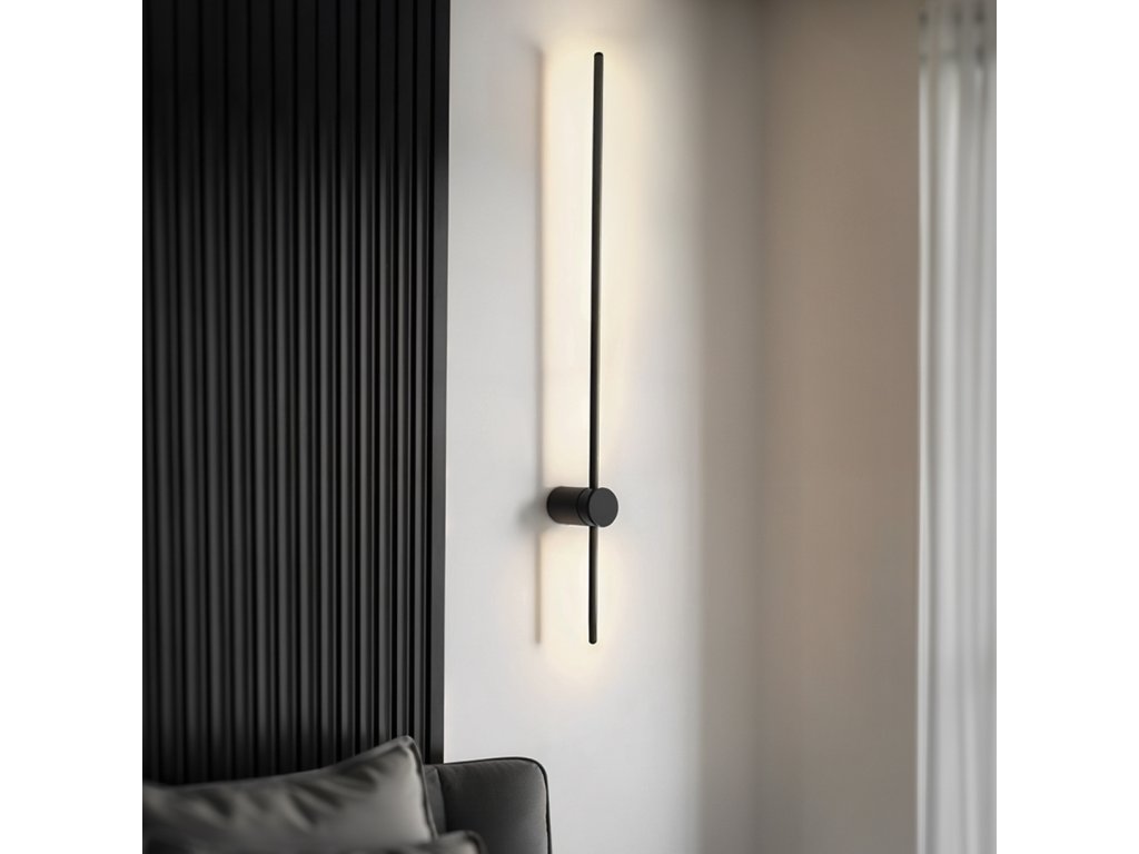 Vertikálny čierny dizajn a decentný vzhľad robia z tejto nástennej lampy vhodné svietidlo do moderných interiérov a dokonale sa hodí k minimalistickým aranžmánom. -
