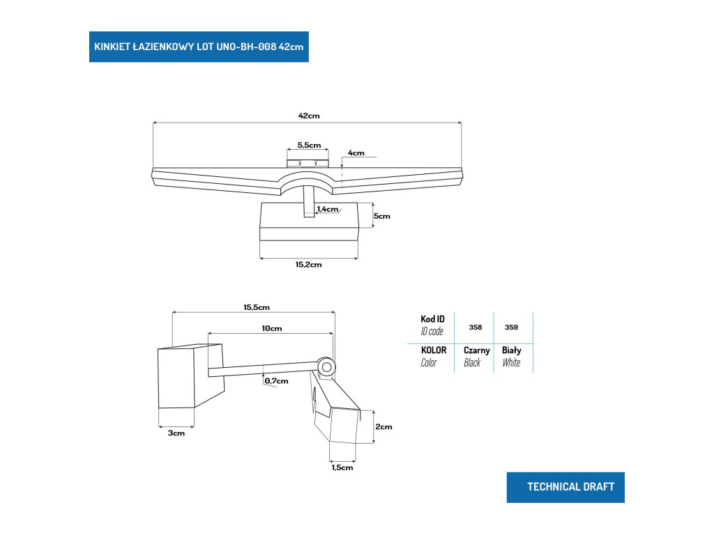 NÁSTENNÁ LAMPA DO KÚPEĽNE LOT 8W 4000K 40CM ČIERNA UNO-BH-008