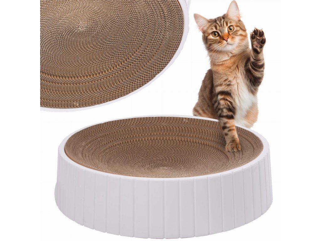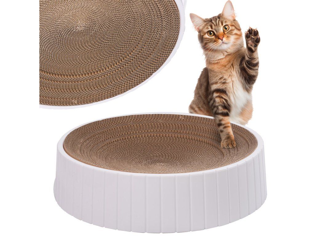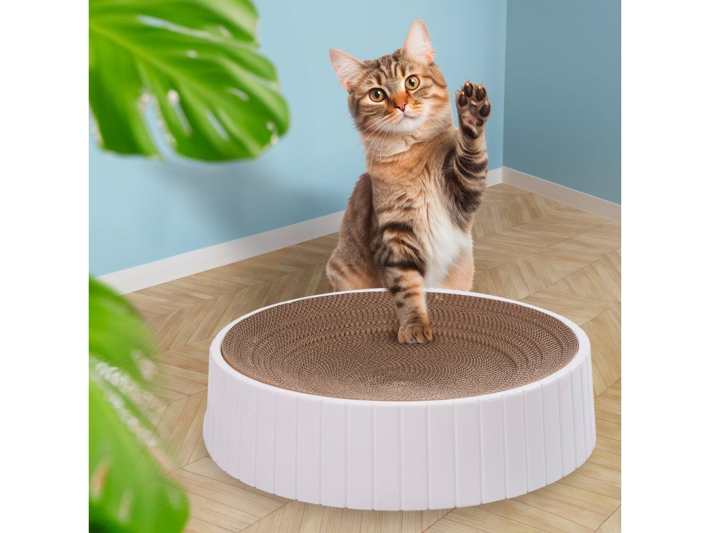 Táto hračka účinne odvádza pozornosť vášho domáceho maznáčika od škrabania nábytku alebo osobných vecí. Veľkosť škrabadla umožňuje vášmu domácemu miláčikovi ľahnúť si naň. Drsný kartón má výstupky, takže medzi ne môžete hodiť mačkovitu mätu, čo dodáva hernému zážitku ešte väčšie vzrušenie. Je súčasťou sady. Farba a minimalistický dizajn škrabadla z neho robia perfektný do každého interiéru a vášho domáceho maznáčika nezahltí množstvo farieb a podnetov. Jednoduchosť tejto hračky zabaví vašu mačku na niekoľko dlhších chvíľ. Základňa je stabilná a počas hry sa neposúva.Dodatočné parametre