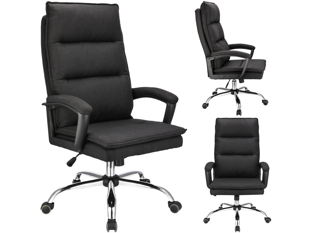 Sedadlo: Vyrobené z odolnej a pohodlnej látky, ktorá zaisťuje pohodlie pri dlhodobom používaní. Podrúčky: Vyrobené z plastu (PP) s povrchovou úpravou z látky, čo zaisťuje odolnosť aj pohodlie. Základňa: Oceľ, ktorá zaisťuje stabilitu a odolnosť stoličky. Kolieska: Vyrobené z plastu (nylon), čo umožňuje ľahké premiestňovanie stoličky bez poškriabania podlahy.Dodatočné parametre