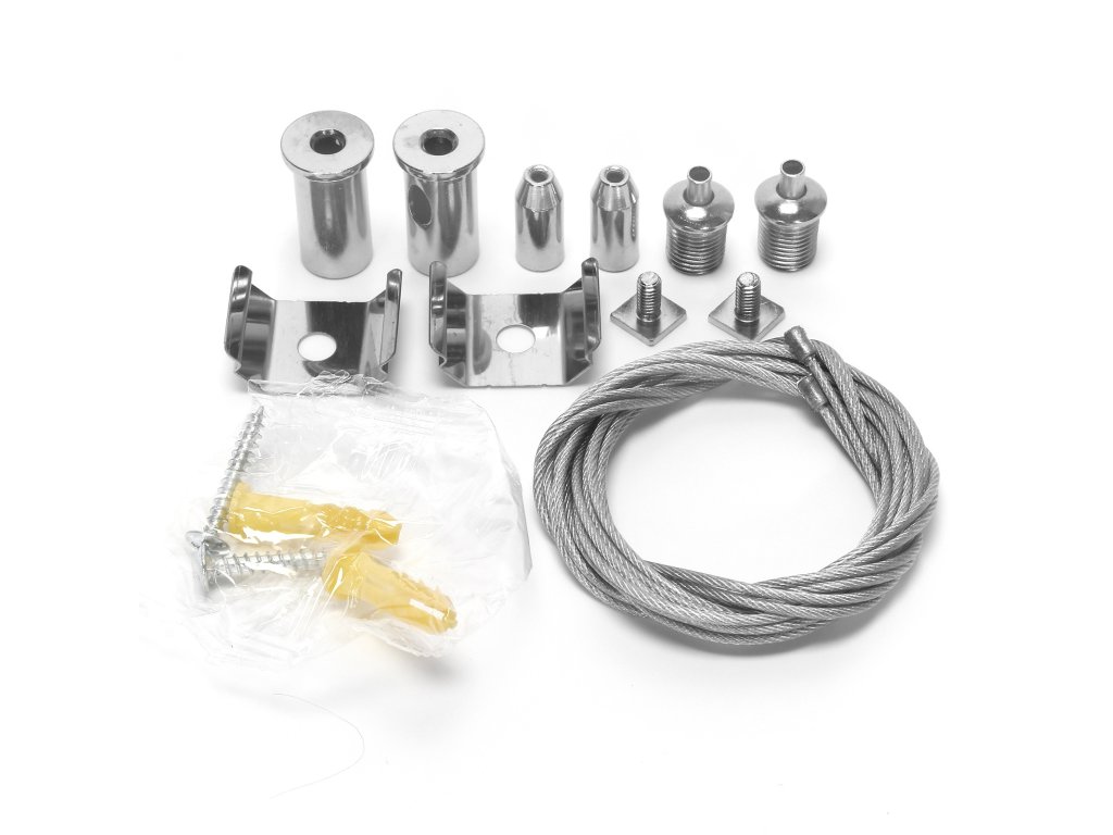 Súčasťou svietidla sú svorky na povrchovú montáž a oceľové káble na závesnú montáž..