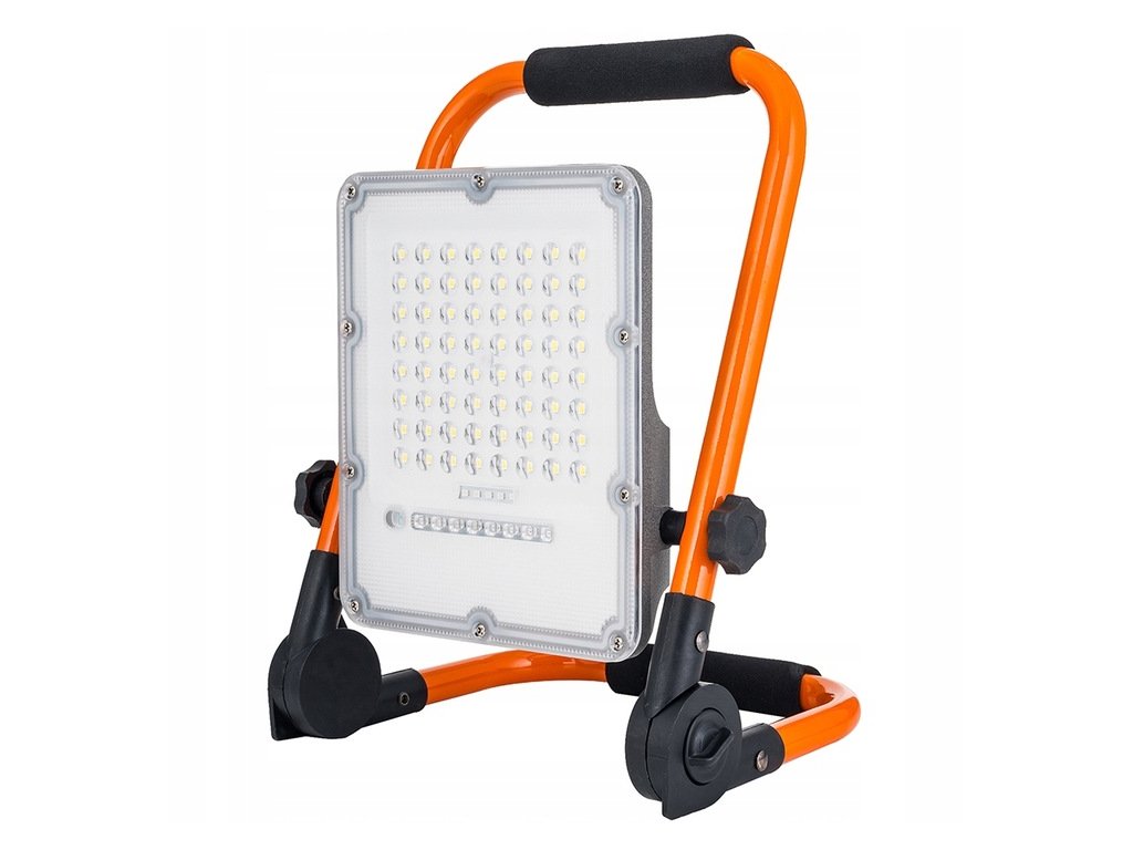 Popis SuperLED sada 300W nabíjateľný LED reflektor so statívom Zloženie sady: SuperLED 300W LED reflektor so vstavanou batériou Statív s rukoväťou Nabíjacia SADA ZABALENÁ V JEDNEJ ORIGINÁLNEJ KRABIČKE Parametre: Výrobca: SuperLED Poľsko Materiál: kov Farba: oranžová Rozmery: 30 x 24,5 x 33 cm Výkon reflektora: 300W Svetelný tok: 10500 lm Farba svetla: studená biela (6000K) Frekvencia: 50/60 Hz Kvalita svetla: Ra > 80 Krytie: IP 65 Prevádzková teplota: -20°C ~ +50°C Kapacita batérie: 10000mAh Určené použitie: Univerzálne / Reflektory / pracovné lampy Certifikáty: CE, RoHS Funkcie osvetlenia: 100% svietenie (až 4 hodiny) 60% svietenie (až 7 hodín) 30% svietenie (až 10 hodín) blikajúce svietenie (režim varovania) Nabíjateľný SuperLED reflektor. Používa sa na stavbách, pri rekonštrukciách, v garážach, dielňach, vonkajších podujatiach a všetkých druhoch prác vyžadujúcich dobré osvetlenie. Vysoká trieda odolnosti IP65 zabezpečí ochranu pred nepriaznivými poveternostnými podmienkami. Predná strana svetlometu je chránená špeciálnym, odolným voči pádu a nerozbitným materiálom. Vstavané LED diódy sú energeticky úsporné a silne osvetľujú oblasť, v ktorej sú namontované. Uhol osvetlenia svetlometu je možné nastaviť až o 360 stupňov a uhol sklonu rukoväte je možné zmeniť o 90 stupňov. To všetko pre zabezpečenie optimálneho osvetlenia. Prevádzkové režimy svetlometu: Režim nabíjania (nabíjačka je súčasťou balenia): LED dióda svieti počas nabíjania na červeno a po nabití sa rozsvieti na zeleno. Zapnutie svetlometu a výber režimov svietenia (na vypnutie svetlometu jednoducho podržte tlačidlo dlhšie) _________________________________________________________________ Režimy svietenia: 100 % svietenie (až 4 hodiny) 60 % svietenie (až 7 hodín) 30 % svietenie (až 10 hodín) blikajúce svietenie (režim varovania) Nepoužívajte svetlomet počas nabíjania batérie.Dodatočné parametre