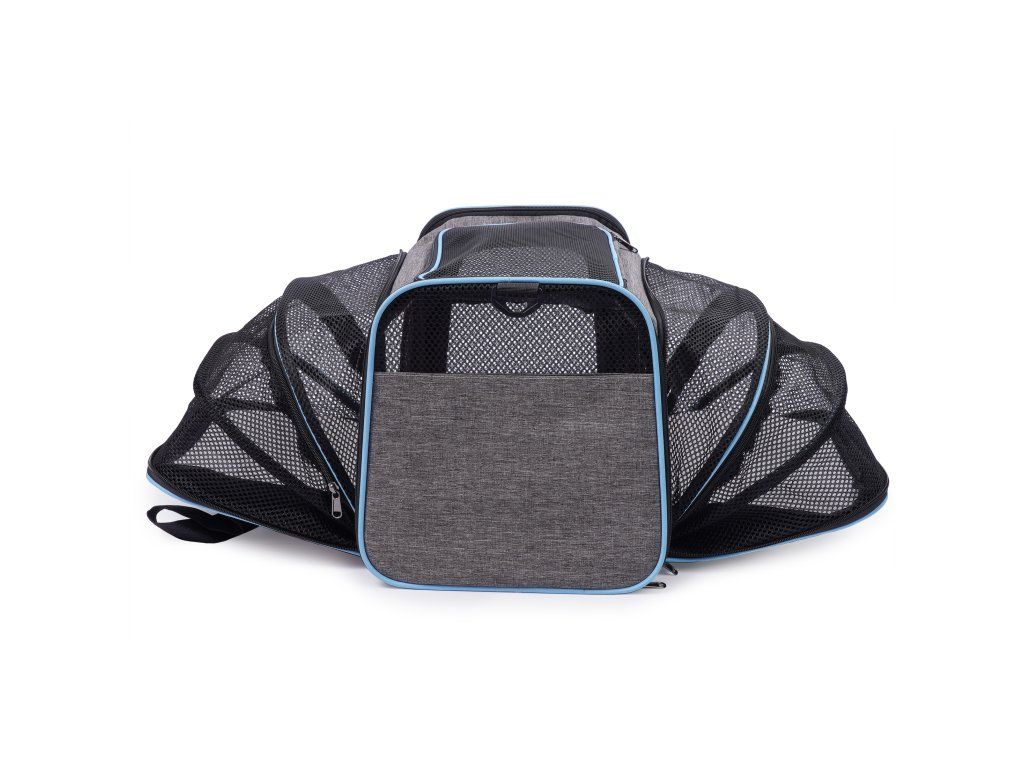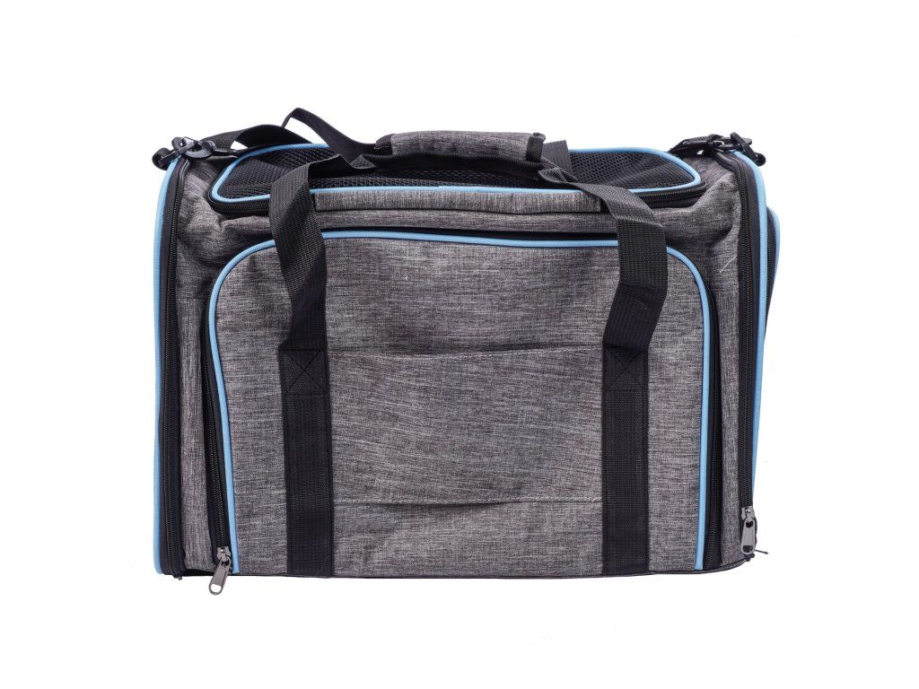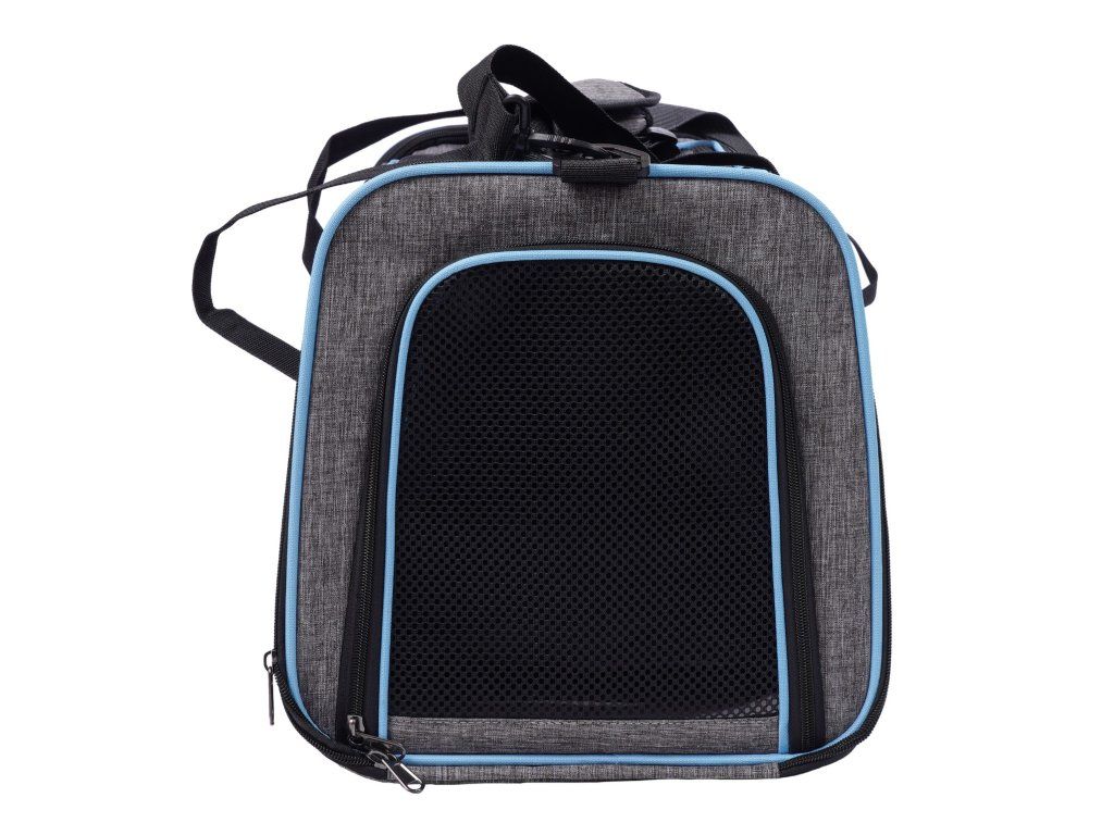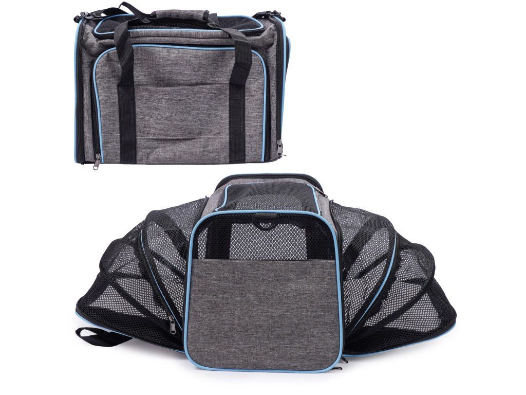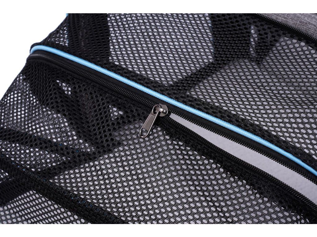 Látkový nosič je praktické a pohodlné riešenie, ktoré zaisťuje pohodlie a bezpečnosť počas cestovania. Je vyrobený z ľahkého a odolného materiálu, ľahko sa čistí a po zložení zaberá málo miesta. Nosič sa dá rozložiť, čím sa vytvorí viac miesta pre vášho domáceho maznáčika. Vetracie mriežky na všetkých stranách zabezpečujú dostatočnú cirkuláciu vzduchu. Pohodlné, nastaviteľné popruhy umožňujú nosenie na ramene. Okrem toho sa nosič dá pripevniť na rukoväť kufra. Dobré vetranie - každé okienko má hustú, vinylom vystuženú sieťovinu na zips, ktorá poskytuje prístup k čerstvému vzduchu a viditeľnosť. Skladacie boky tašky - najzaujímavejšou vlastnosťou tašky sú skladacie boky nosiča, ktoré vám umožňujú vytvoriť viac priestoru. Možno pripevniť k batožine - naša taška má priechodné vrecko, takže si môžete nosič pripevniť k cestovnej taške. Nastaviteľný ramenný popruh. Vnútorné bezpečnostné vodítko. Skladací a ľahký - keď tašku nepotrebujete, môžete ju zložiť naplocho, takže nezaberie veľa miesta.Dodatočné parametre