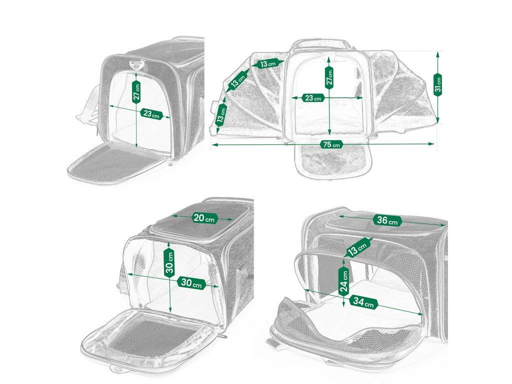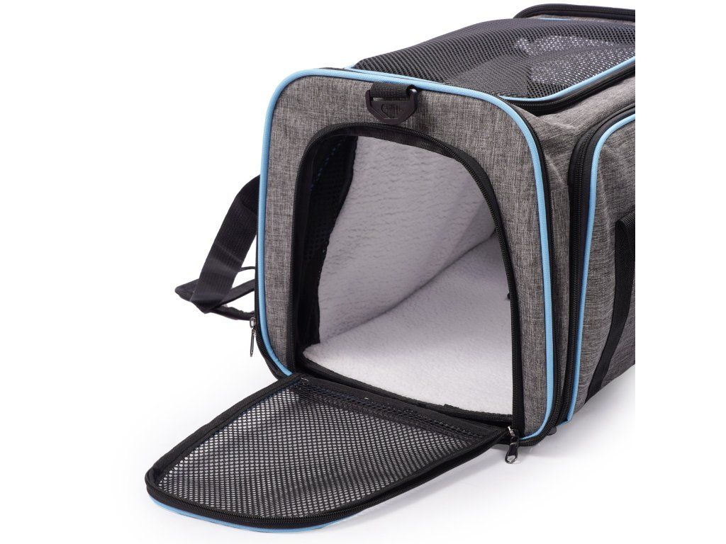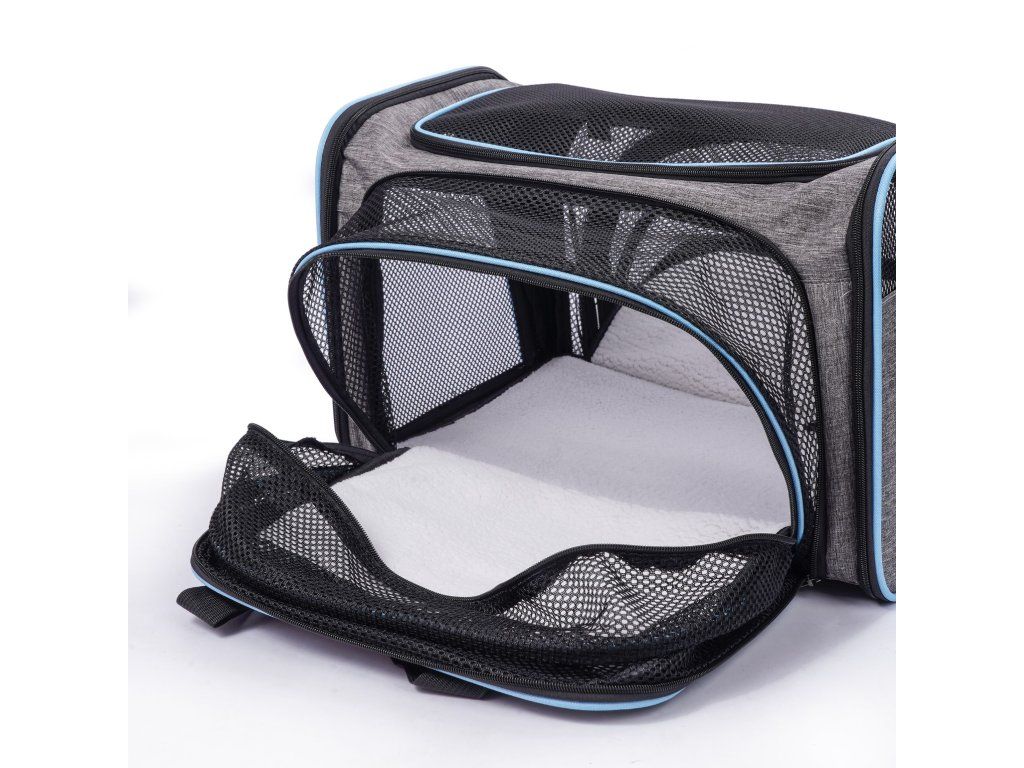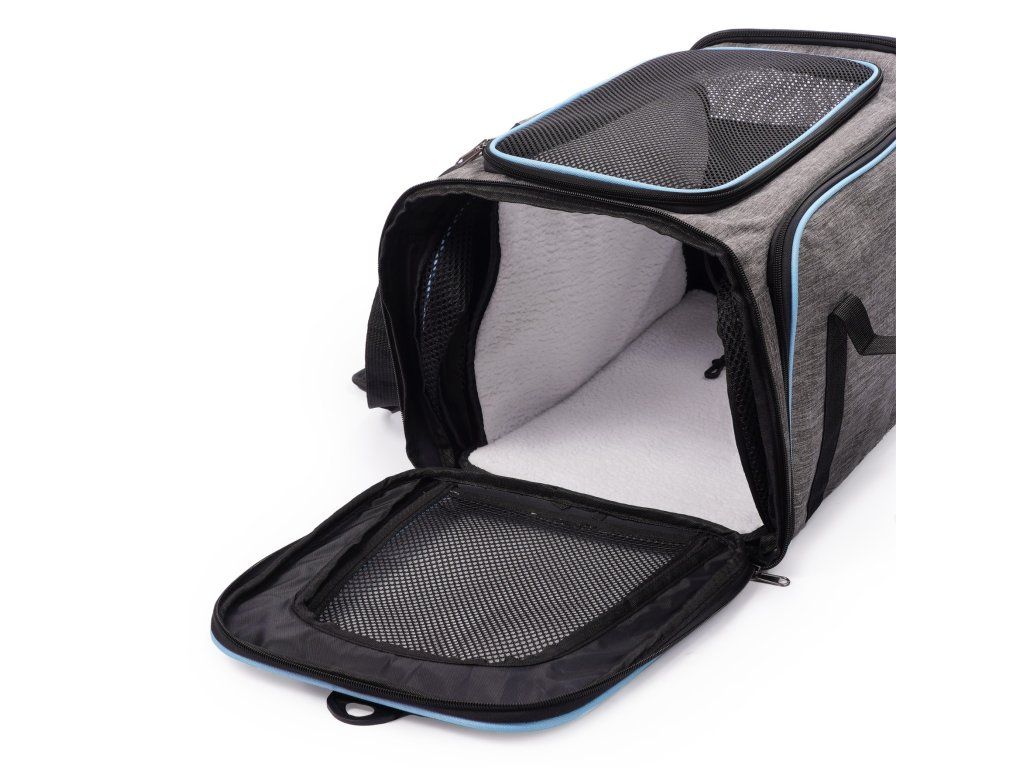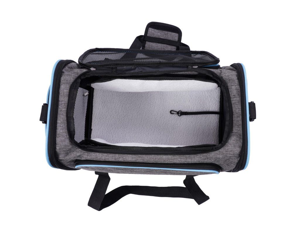 Látkový nosič je praktické a pohodlné riešenie, ktoré zaisťuje pohodlie a bezpečnosť počas cestovania. Je vyrobený z ľahkého a odolného materiálu, ľahko sa čistí a po zložení zaberá málo miesta. Nosič sa dá rozložiť, čím sa vytvorí viac miesta pre vášho domáceho maznáčika. Vetracie mriežky na všetkých stranách zabezpečujú dostatočnú cirkuláciu vzduchu. Pohodlné, nastaviteľné popruhy umožňujú nosenie na ramene. Okrem toho sa nosič dá pripevniť na rukoväť kufra. Dobré vetranie - každé okienko má hustú, vinylom vystuženú sieťovinu na zips, ktorá poskytuje prístup k čerstvému vzduchu a viditeľnosť. Skladacie boky tašky - najzaujímavejšou vlastnosťou tašky sú skladacie boky nosiča, ktoré vám umožňujú vytvoriť viac priestoru. Možno pripevniť k batožine - naša taška má priechodné vrecko, takže si môžete nosič pripevniť k cestovnej taške. Nastaviteľný ramenný popruh. Vnútorné bezpečnostné vodítko. Skladací a ľahký - keď tašku nepotrebujete, môžete ju zložiť naplocho, takže nezaberie veľa miesta.Dodatočné parametre
