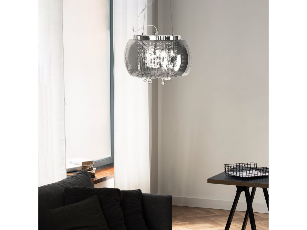 Sklenená stropná lampa, tónované zrkadlo, kvapky vody. Moderný dizajn, jednoduchosť tvaru a nevšedný svetelný efekt robia toto svietidlo priťahujúcim pohľady milovníkov dizajnu a dobrého vkusu. Ideálne do klasických aj moderných interiérov.
