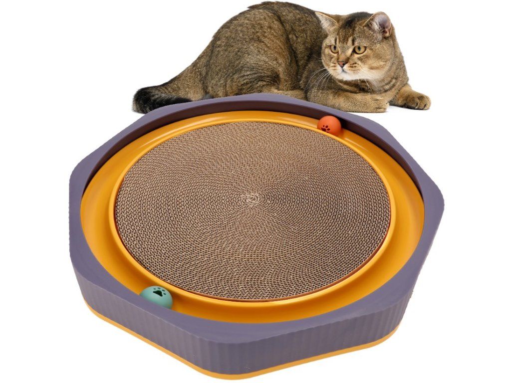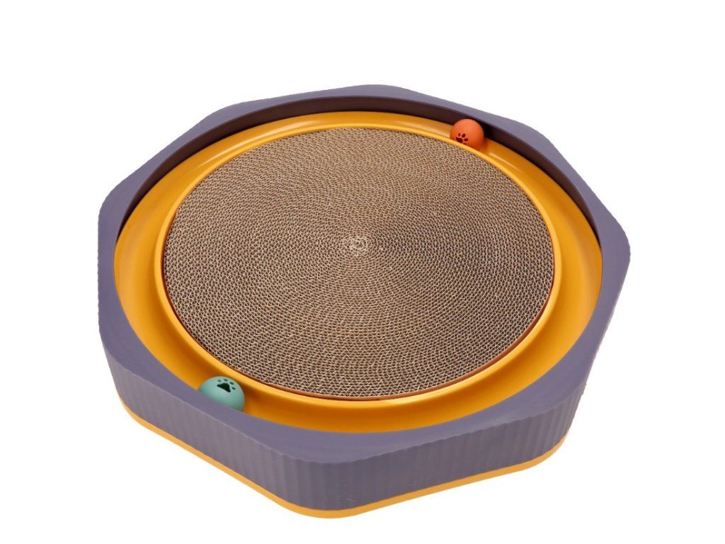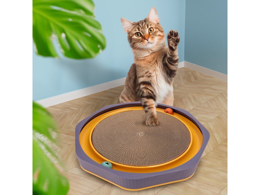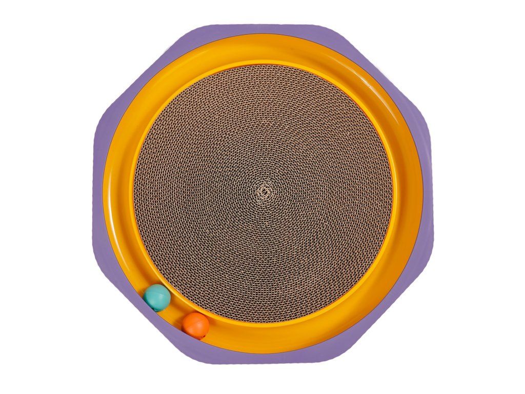 Stred je vyrobený z kartónu. Pre väčšiu atraktivitu bola do súpravy pridaná prírodná mäta kocúrniková. Môže sa nasypať do štrbín škrabadla, čím sa vaša mačka s väčšou pravdepodobnosťou vráti. Farby hračky sú pútavé a podnecujú záujem. Táto hračka odrádza mačky od škrabania nábytku a osobných vecí. Je pevná a má širšiu základňu, ktorá im bráni v šmýkaní sa po podlahe počas intenzívnej hry. V bokoch základne sú zapustené dve loptičky, ktoré hračke poskytujú ďalšiu atraktivitu. Jej veľkosť umožňuje vášmu domácemu miláčikovi ľahnúť si na ňu a odpočívať.Dodatočné parametre