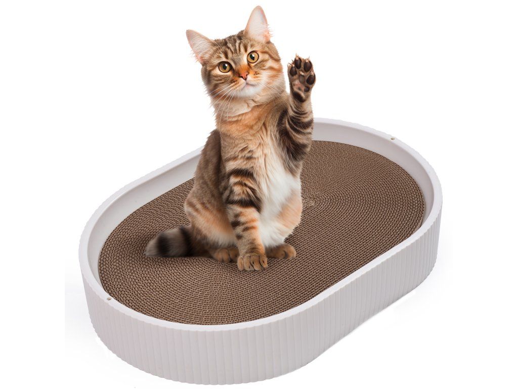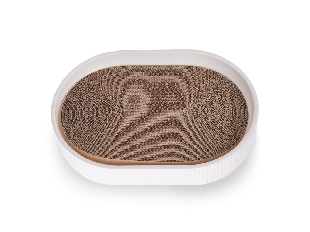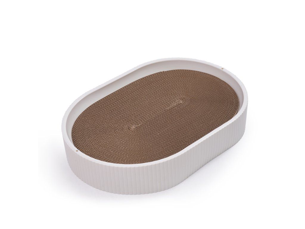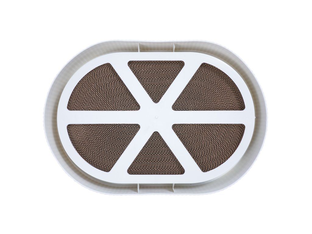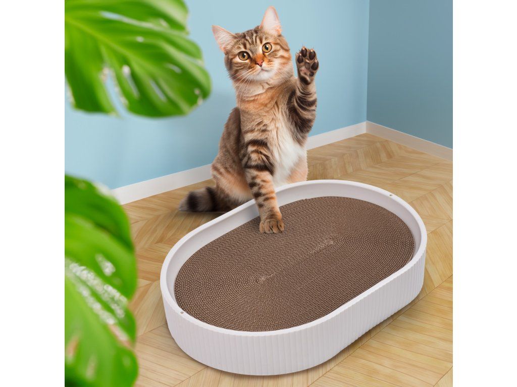 Škrabadlo je veľké a množstvo kartónu povzbudzuje vašu mačku k jeho používaniu. Pomáha vašej mačke udržiavať správnu hygienu pazúrov tým, že si ich brúsi. Jeho prítomnosť odvádza pozornosť vášho domáceho maznáčika od nábytku a osobných vecí. Jeho veľkosť umožňuje vášmu domácemu maznáčikovi na ňom ležať. Farby a minimalistický dizajn škrabadla ho robia vhodným do každého interiéru bez toho, aby domáceho maznáčika zahlcoval. Vďaka jednoduchosti tejto hračky sa vaša mačka môže hrať celé hodiny. Základňa je veľmi stabilná a odolná. Povrch kartónu je drsný a má výstupky, ktoré vám umožňujú posypať medzi ne mätu kocúrnikovú, čo pridáva vášmu domácemu maznáčikovi pútavejší herný zážitok.Dodatočné parametre