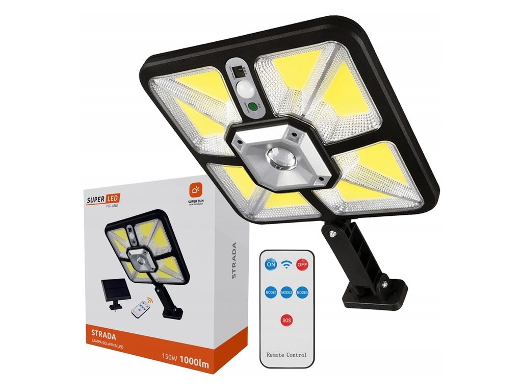 Solárna LED COB lampa Pouličné osvetlenie so senzorom 150W s 5 m káblom + diaľkové ovládanie