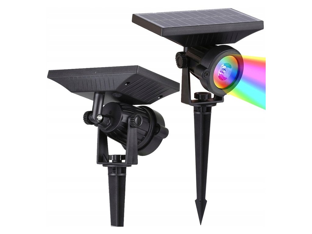 Solárny záhradný reflektor LED RGB, namontovaný na pevnom hrote