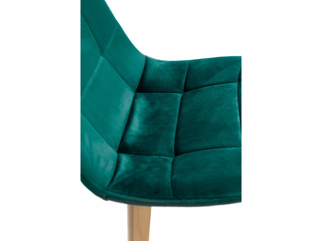 Táto stolička z kolekcie COLIN sa vyznačuje mäkkým a odolným sedadlom potiahnutým zamatovým velúrom. Je husto polstrovaná a jej operadlo má pohodlný tvar, ktorý dokonale podopiera chrbát. Drevené nohy vyrobené zo svetlého buka zaisťujú stabilitu a odolnosť.Dodatočné parametre