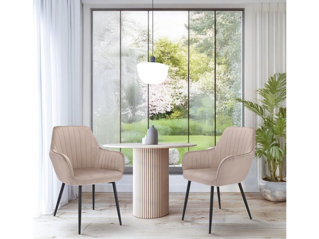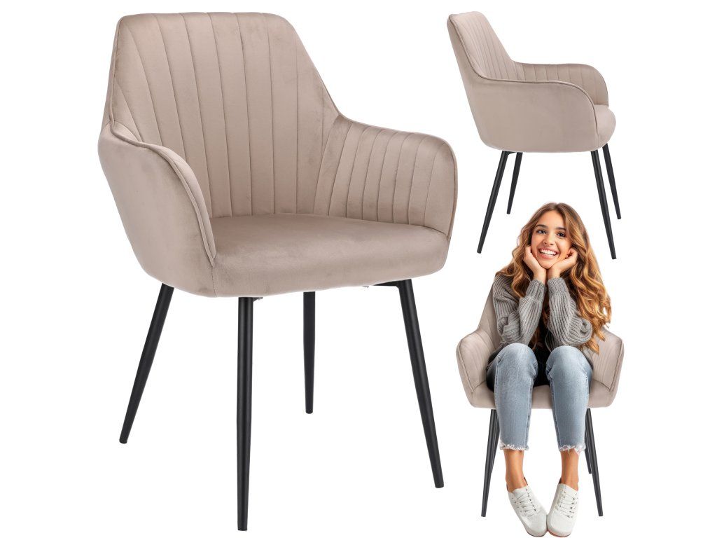 Stolička z kolekcie CORA. Táto robustná zamatová stolička má mäkké sedadlo a vysoké operadlo s ozdobným prešívaním. Celkový vzhľad umocňujú štíhle čierne nohy, ktoré dodávajú stoličke vizuálnu vzdušnosť a zároveň poskytujú ideálnu stabilitu. Výška operadla, podrúčky a mäkkosť robia stoličku neuveriteľne pohodlnou.Dodatočné parametre