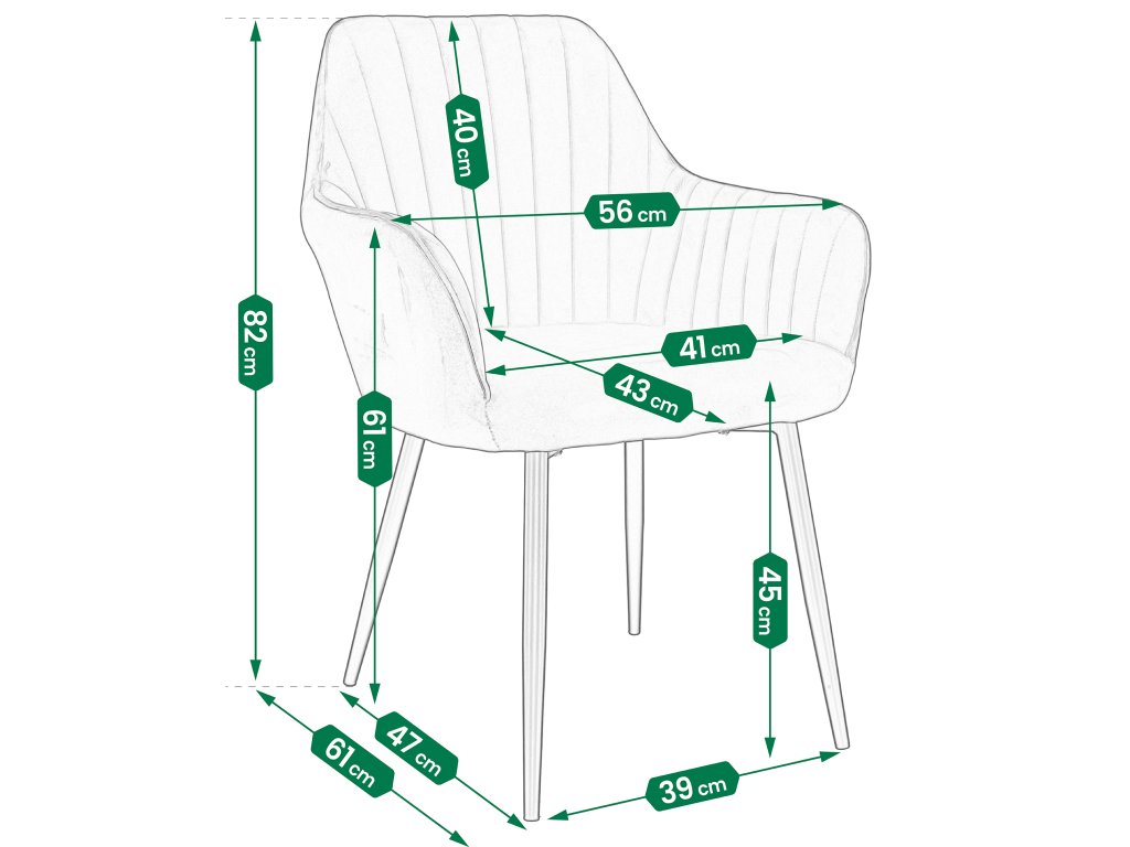 Stolička z kolekcie CORA. Táto robustná zamatová stolička má mäkké sedadlo a vysoké operadlo s ozdobným prešívaním. Celkový vzhľad umocňujú štíhle čierne nohy, ktoré dodávajú stoličke vizuálnu vzdušnosť a zároveň poskytujú ideálnu stabilitu. Výška operadla, podrúčky a mäkkosť robia stoličku neuveriteľne pohodlnou.Dodatočné parametre