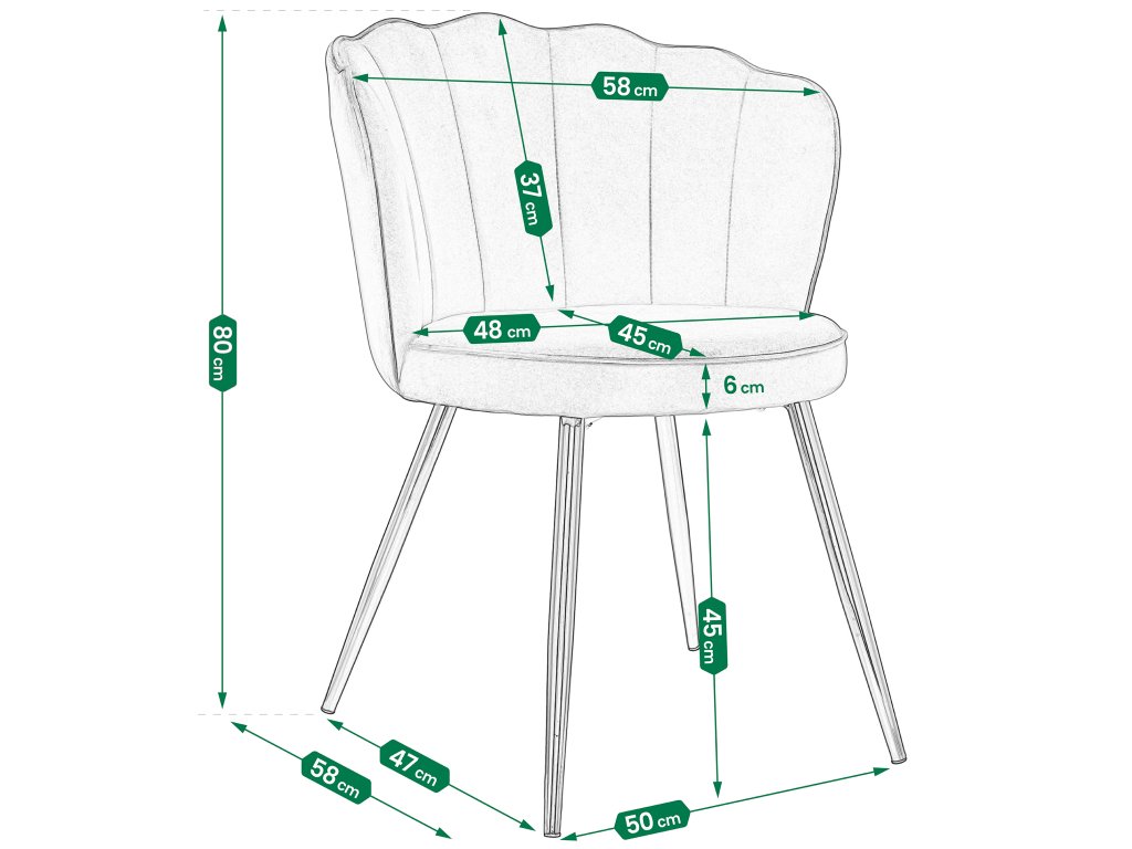 Stolička z kolekcie FIORE. Konštrukcia stoličky je založená na pevnom oceľovom ráme, ktorý zaisťuje stabilitu. Moderný, minimalistický tvar sa perfektne hodí do rôznych interiérových štýlov, od moderných až po klasické. Sedadlo stoličky je vyrobené z vysoko kvalitného zamatu. Tento materiál sa vyznačuje nielen mäkkosťou, ale aj vysokou odolnosťou voči škvrnám a jednoduchým čistením.Dodatočné parametre
