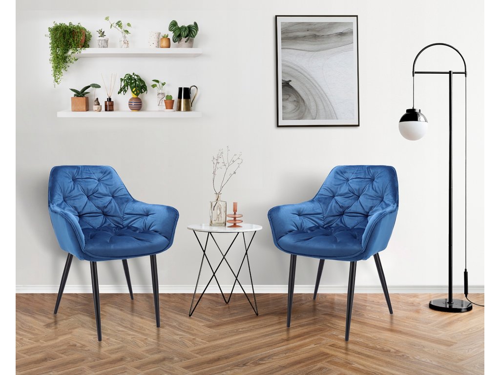 Stolička LARGO čalúnená v tmavomodrom zamatovom prevedení