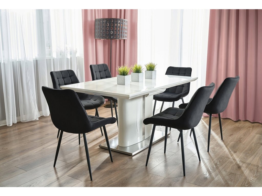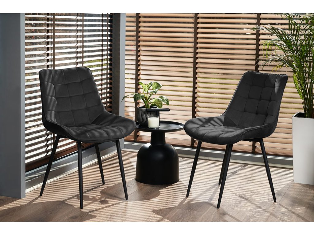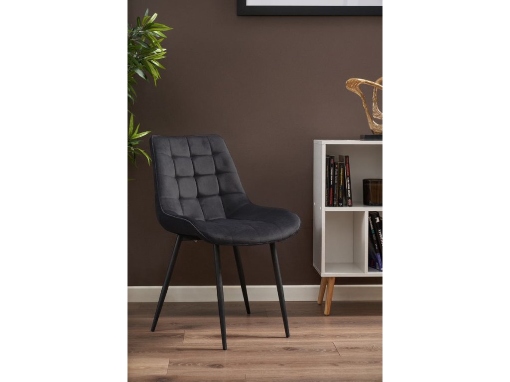 Stolička z kolekcie MISTY. Zamatové čalúnenie z velúrovej látky pôsobí mimoriadne jemne a vysoké a štíhle nohy v čiernej farbe pôsobia veľmi elegantne a zaručujú dokonalú stabilitu.Dodatočné parametre