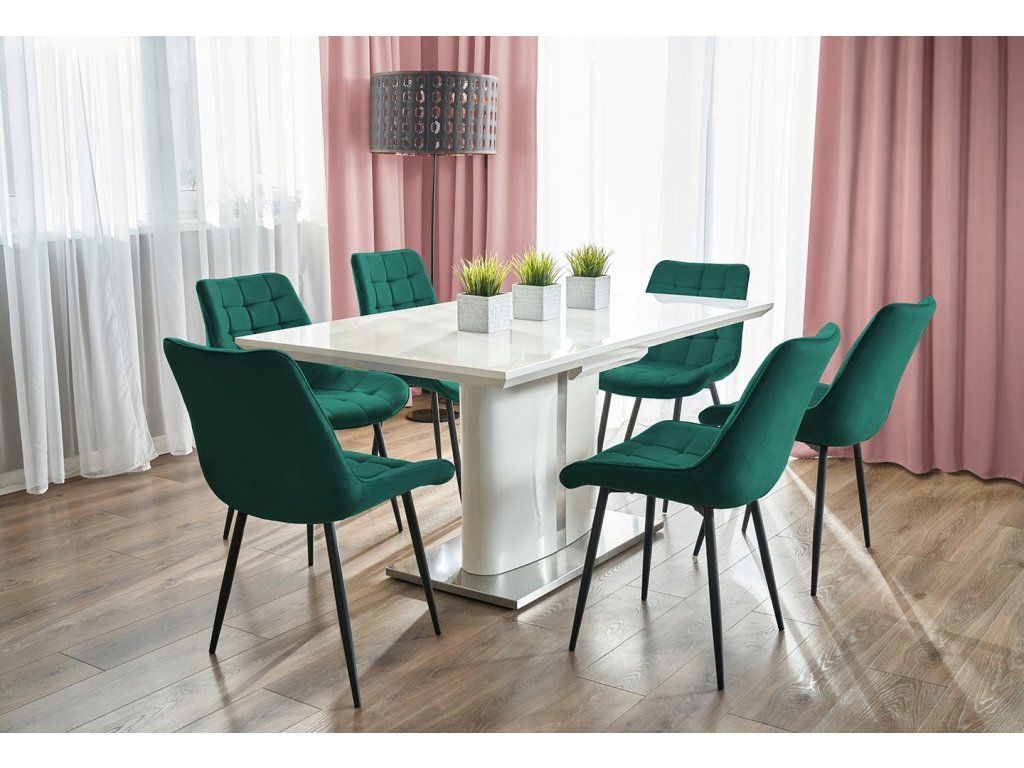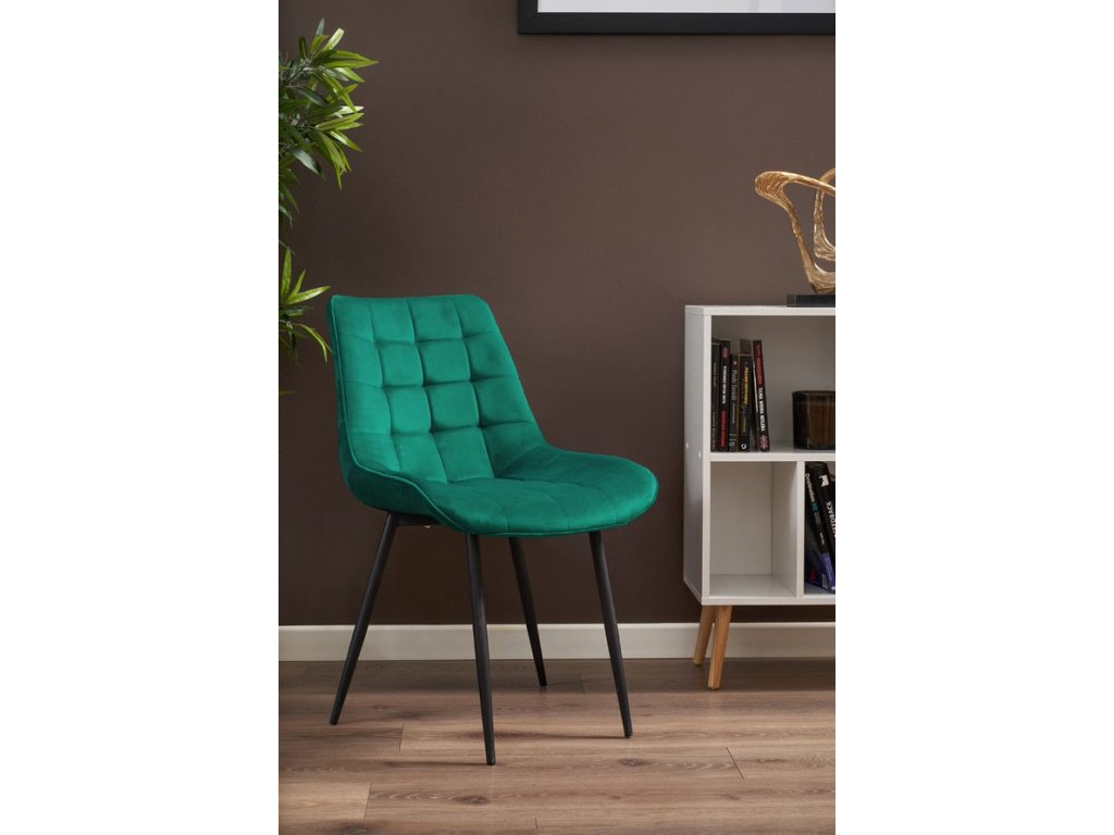 Stolička z kolekcie MISTY. Zamatové čalúnenie z velúrovej látky pôsobí mimoriadne jemne a vysoké a štíhle nohy v čiernej farbe pôsobia veľmi elegantne a zaručujú dokonalú stabilitu.Dodatočné parametre