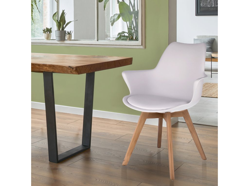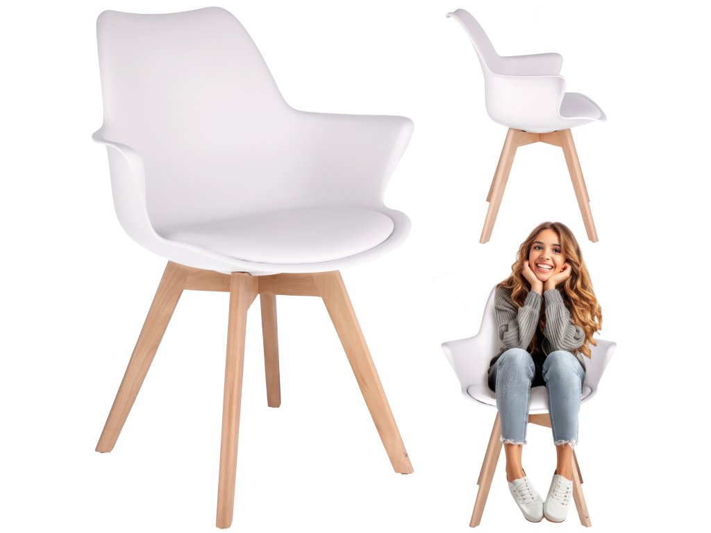 Stolička ORLEAN, škandinávska, plast, ekokoža, biela