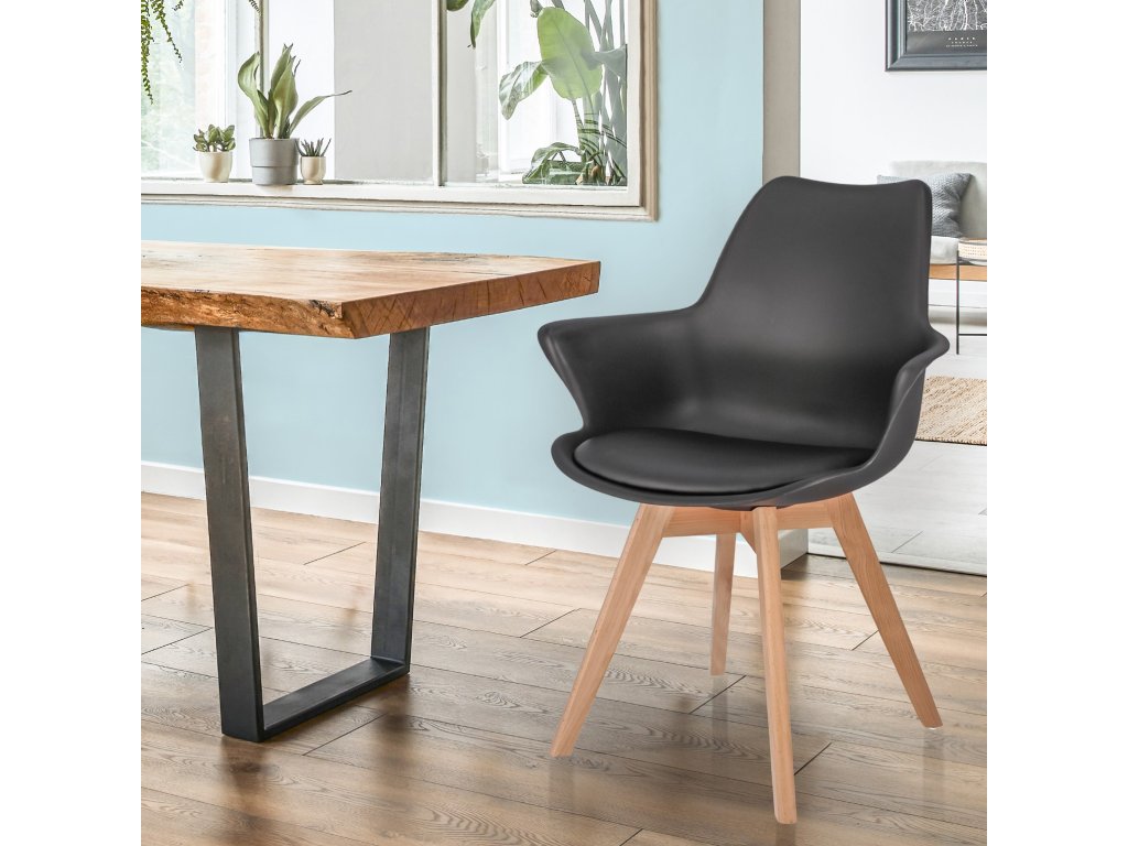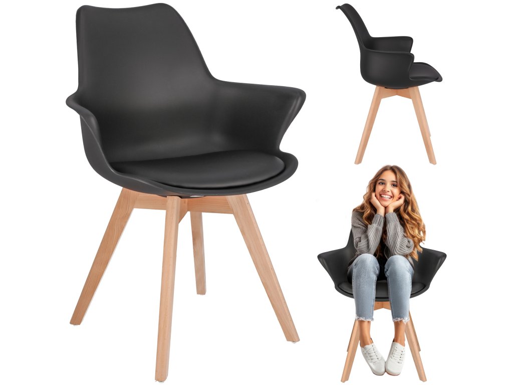 Stolička ORLEAN, škandinávska, plast, ekokoža, čierna