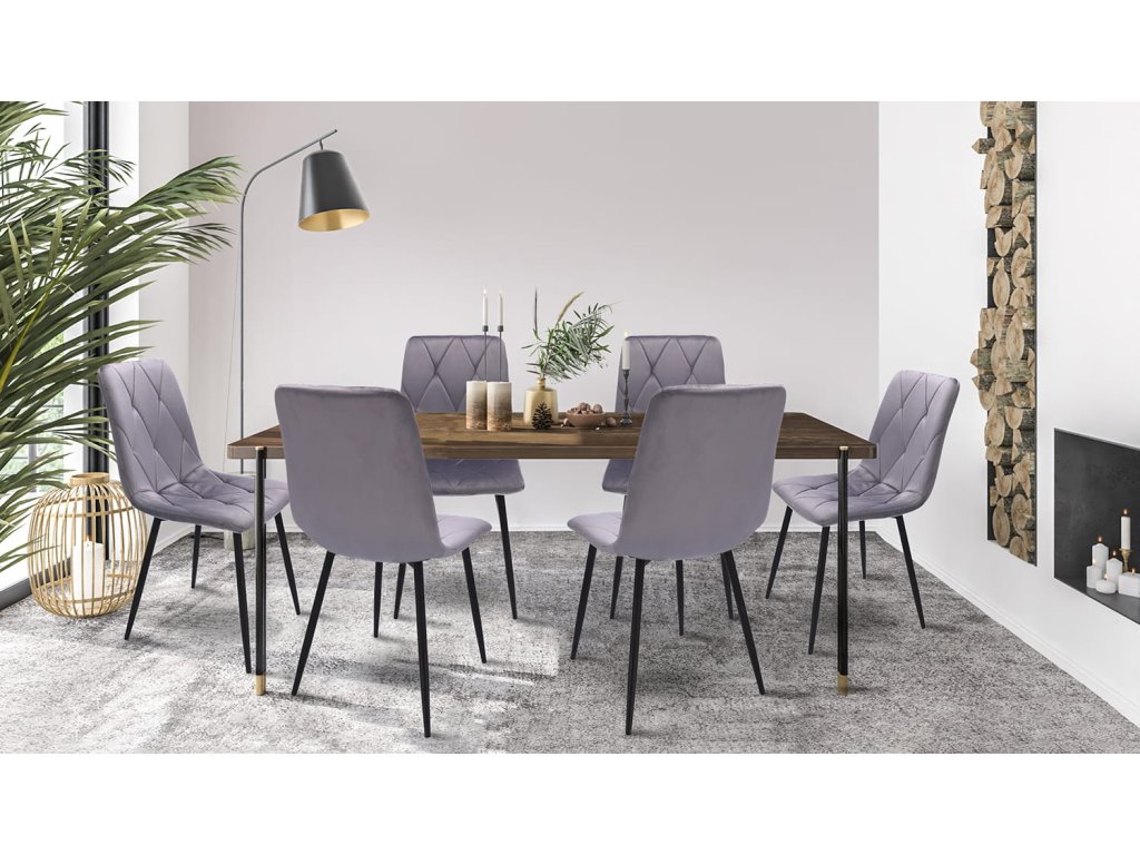 Stolička z kolekcie PIADO. Stolička je čalúnená zamatom a zvnútra prešívaná pravidelným diamantovým stehom. Vysoké, štíhle čierne nohy vyzerajú veľmi elegantne a zaručujú dokonalú stabilitu.Dodatočné parametre