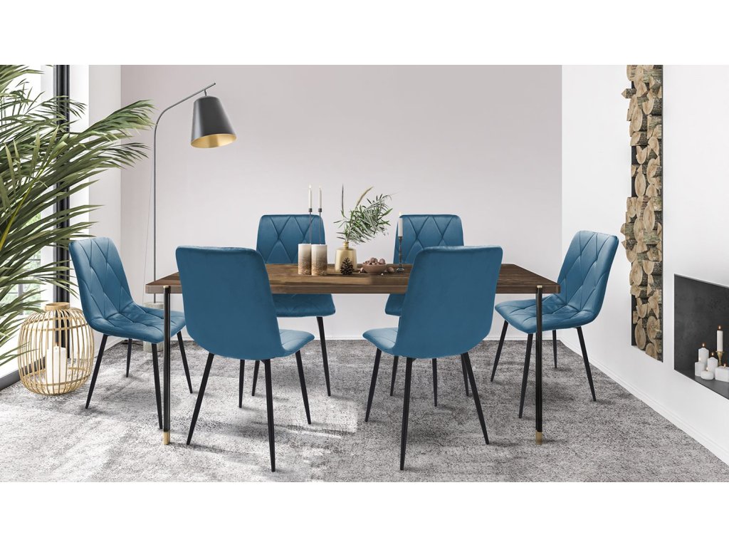 Stolička z kolekcie PIADO. Stolička je čalúnená zamatom a zvnútra prešívaná pravidelným diamantovým stehom. Vysoké, štíhle čierne nohy vyzerajú veľmi elegantne a zaručujú dokonalú stabilitu.Dodatočné parametre
