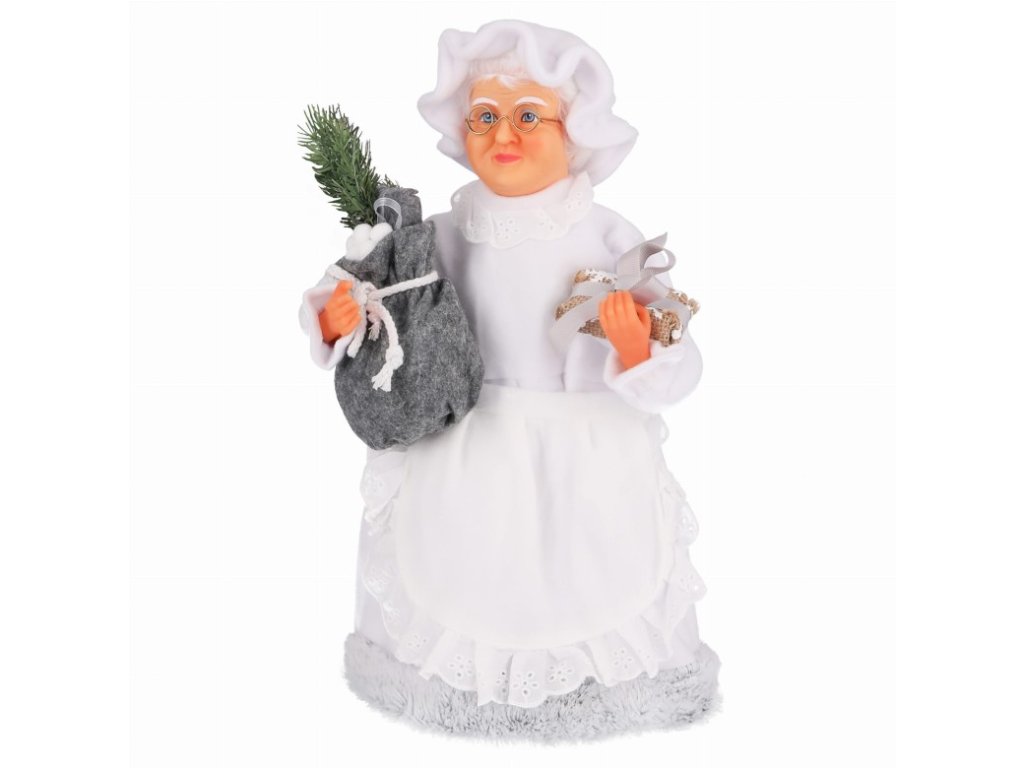 PANI MILUVKA 40 cm VIANOČNÁ OZDOBA A-291041 Výška: 40 cm (po vrch hlavy) Šírka: 20 cm Krásna pani Mikulášová dodá vašim sviatkom čaro a kúzlo. KRÁSNA DEKORÁCIA - DOKONALÝ NÁPAD NA DARČEK Pani Mikulášová je vyrobená z plastu, darčeky nosí pod pazuchou. Figúrka je vysoká cca 40 cm, je ideálna na umiestnenie na verandu, pri vchodových dverách, pri krbe, vedľa vianočného stola a do akéhokoľvek iného zákutia, ktoré sa dá vyzdobiť kúzlom Vianoc.Dodatočné parametre