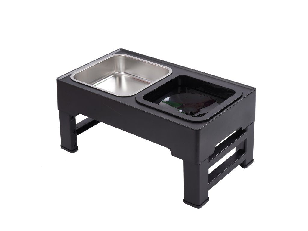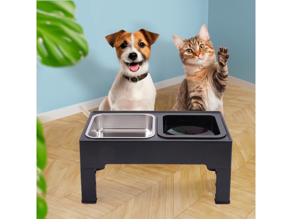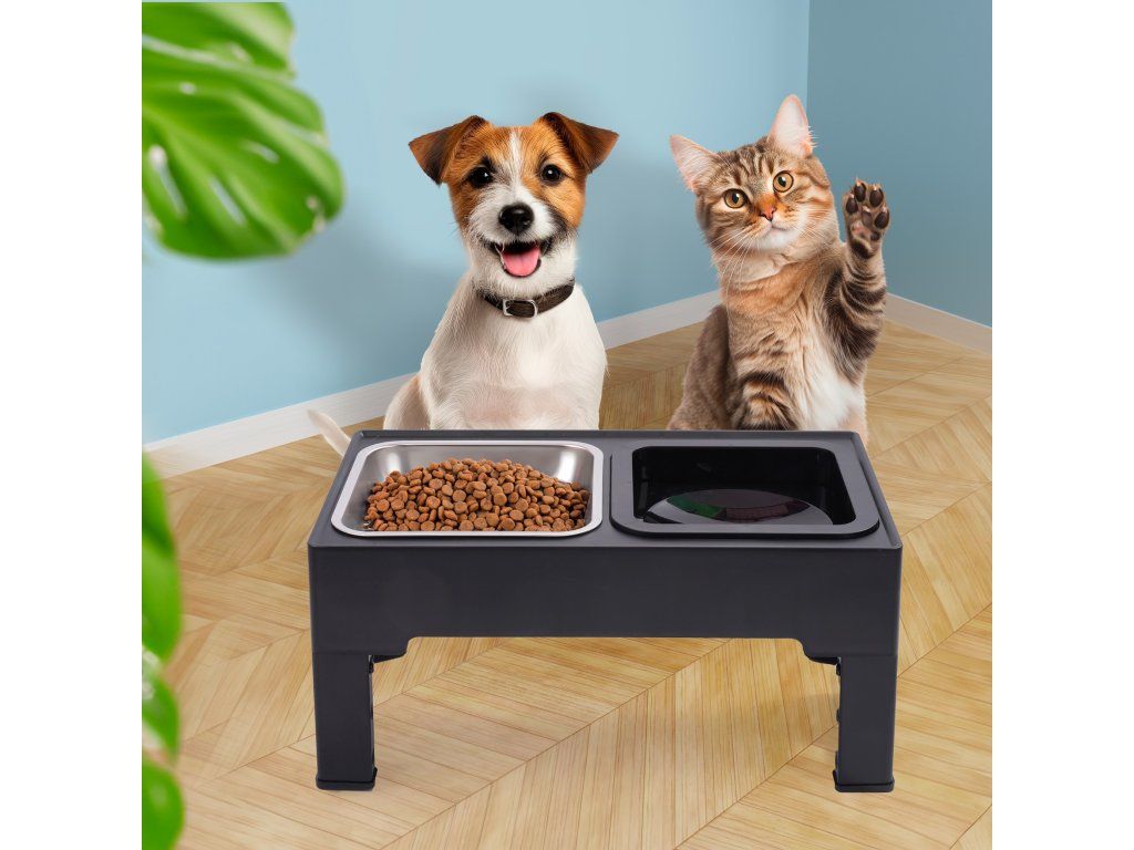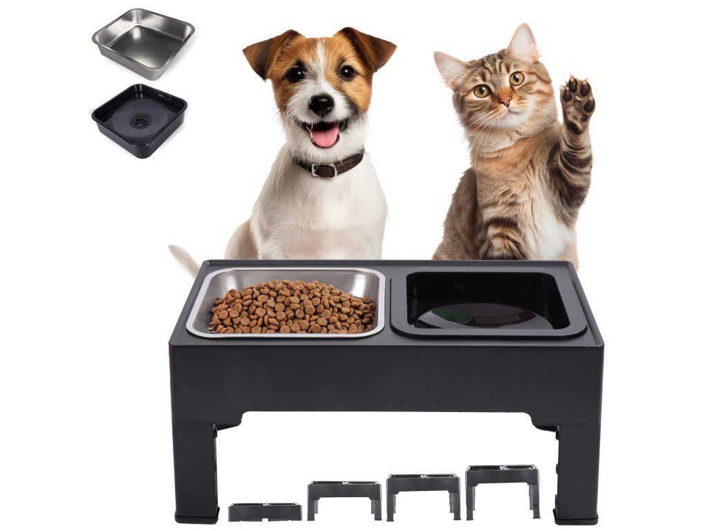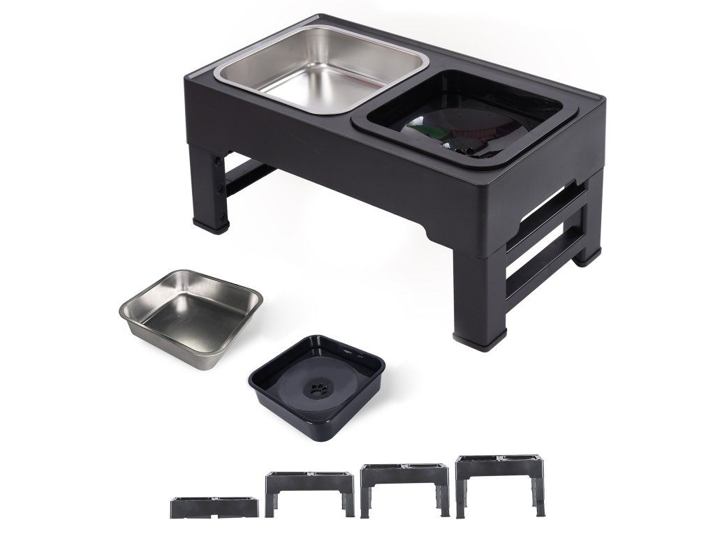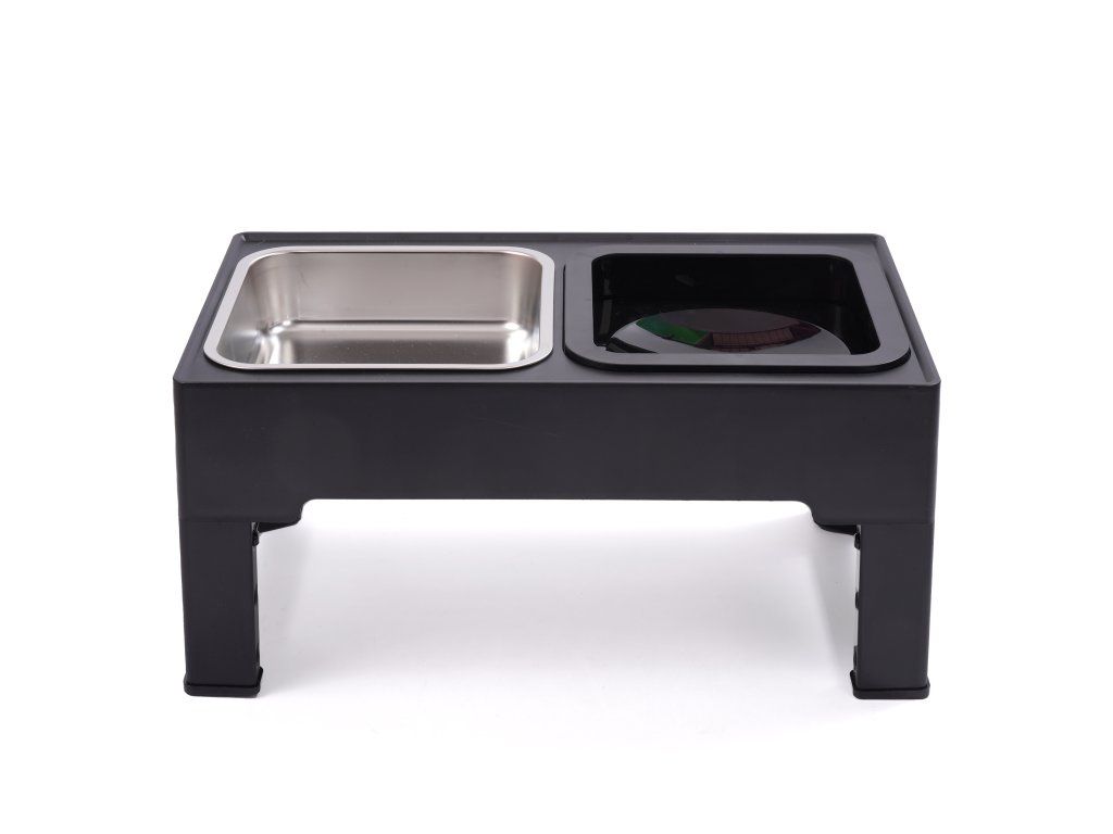 Misky sú vyrobené z nehrdzavejúcej ocele, čo zaručuje odolnosť a jednoduché čistenie. Miska na vodu má špeciálne dno, ktoré sa pri napĺňaní zdvíha, čo povzbudzuje vášho domáceho maznáčika piť menšie a pokojnejšie dúšky. Výšku misky je možné nastaviť štyrmi spôsobmi, vďaka čomu toto riešenie rastie s vaším domácim miláčikom počas celého jeho rastu. Misky sú odnímateľné pre jednoduché čistenie. Samotná sada je protišmyková a stabilná, vďaka čomu ju ani väčšie domáce zvieratá nebudú môcť prevrátiť. Elegantná čierna farba misiek znamená, že doplnia akýkoľvek interiér a dlhšie si zachovajú svoju estetickú príťažlivosť. Táto sada misiek zvyšuje pohodlie vášho domáceho maznáčika a zlepšuje kvalitu príjmu potravy tým, že mu umožňuje udržiavať správne držanie tela bez nadmerného ohýbania krku.Dodatočné parametre