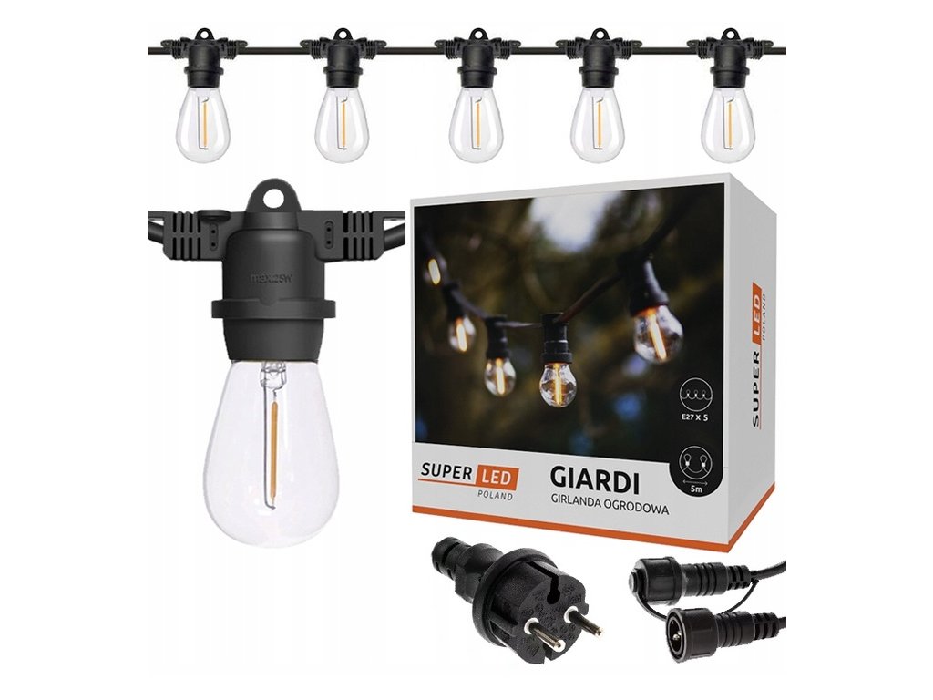 Záhradná girlanda 5m + 5x E27 LED žiarovky