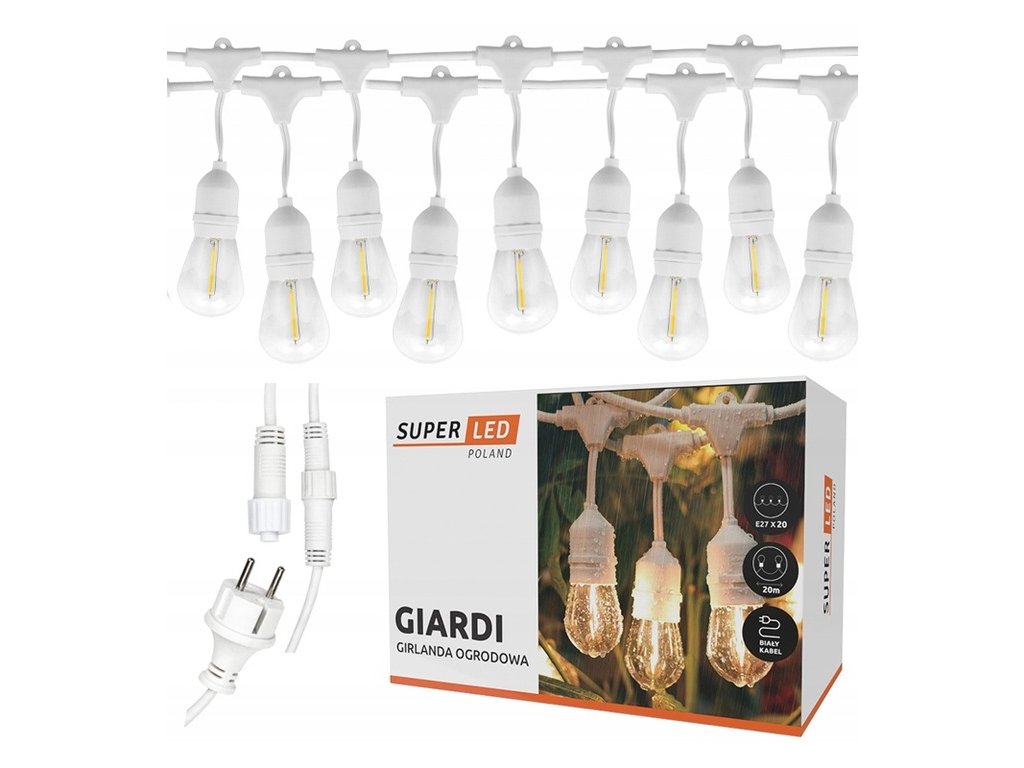 Záhradná girlanda BIELA vonkajšia reťaz 20 m + 20x E27 LED závesná žiarovka