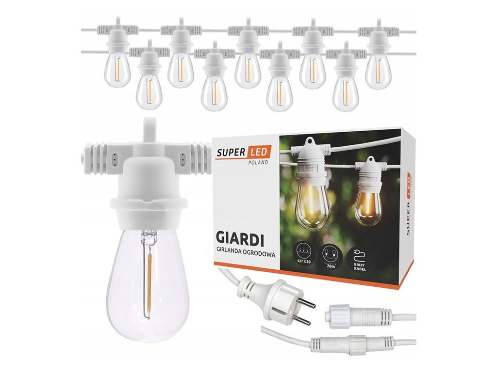 Záhradná girlanda BIELA vonkajšia reťaz 20m + 20x E27 LED žiarovka