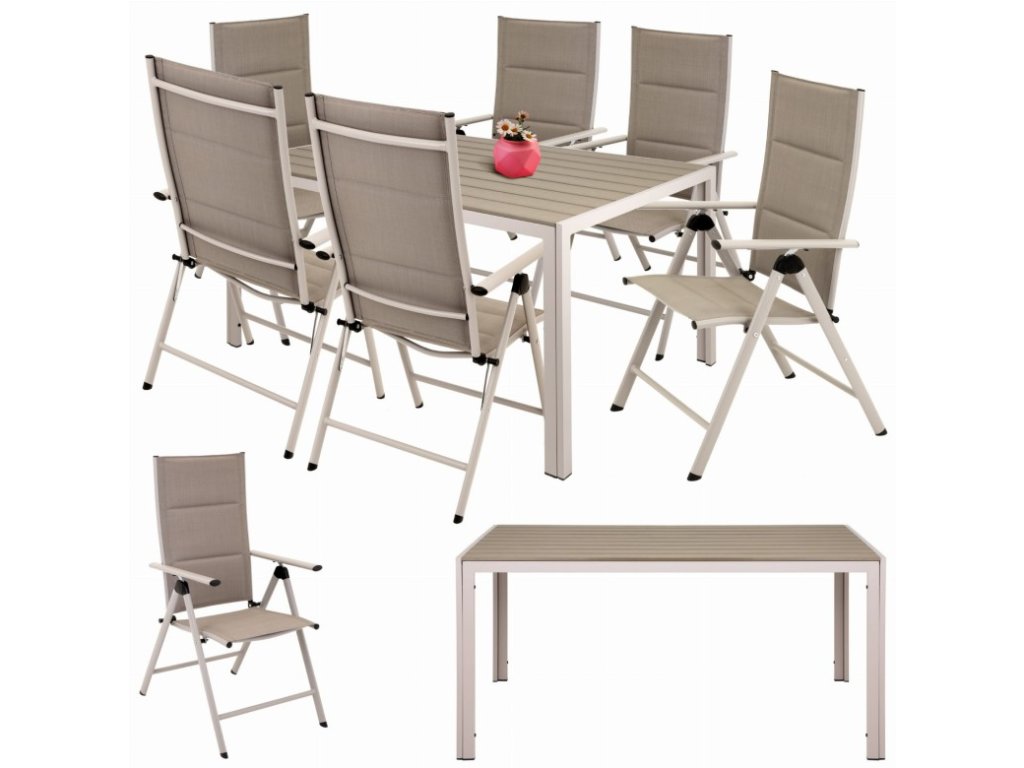 Nastavenie operadla: Stoličky majú 7-polohové nastavenie operadla, čo vám umožňuje dokonale nastaviť uhol sklonu podľa vašich potrieb – od sedu až po relaxačnú, ležiacu polohu. Odolnosť a odolnosť: Nábytok je vyrobený z vysoko kvalitných materiálov odolných voči poveternostným podmienkam, ako je dážď a UV žiarenie, čo zaručuje jeho dlhú životnosť a estetický vzhľad po mnoho sezón. Štýlový dizajn: Súprava sa vyznačuje moderným a elegantným vzhľadom, ktorý dokonale doplní každú záhradu, terasu alebo balkón.Dodatočné parametre